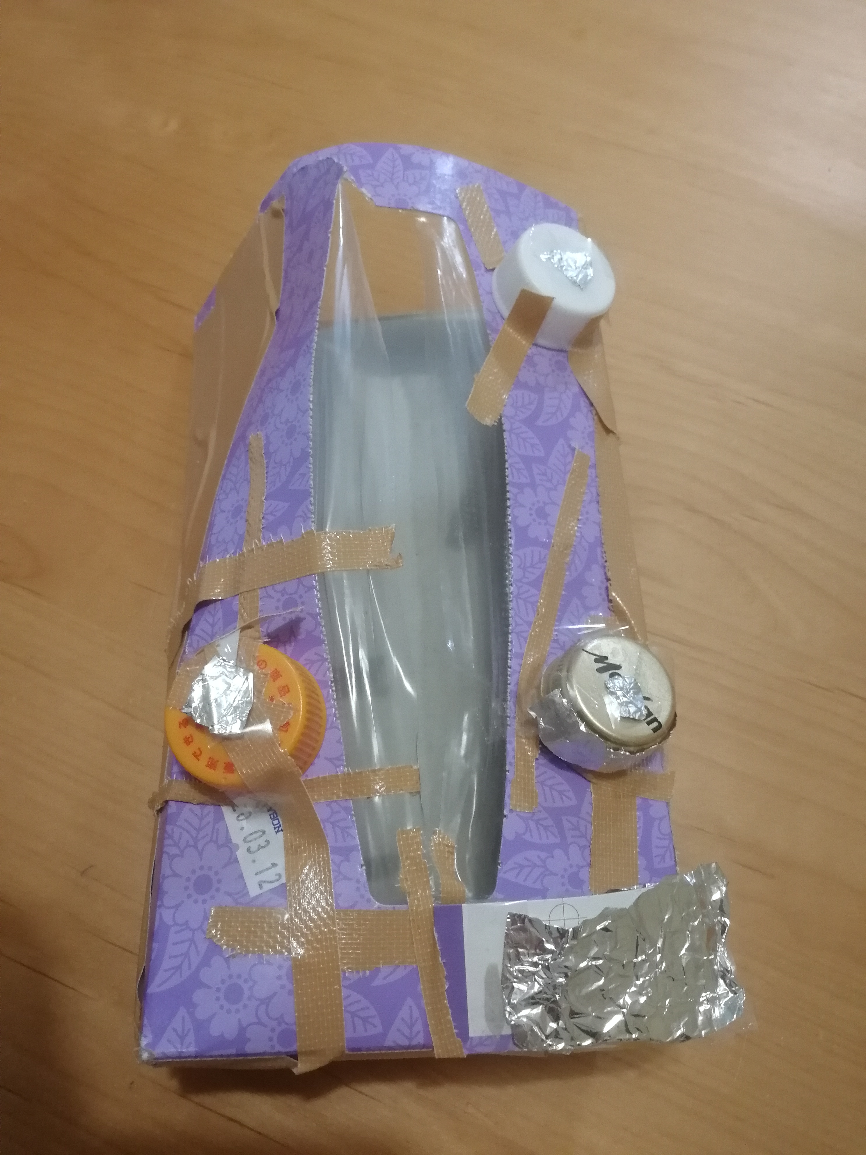 めちゃ、かっこいい! ガムテープをほそく切ってはっているのが、いかしたデザインだね!