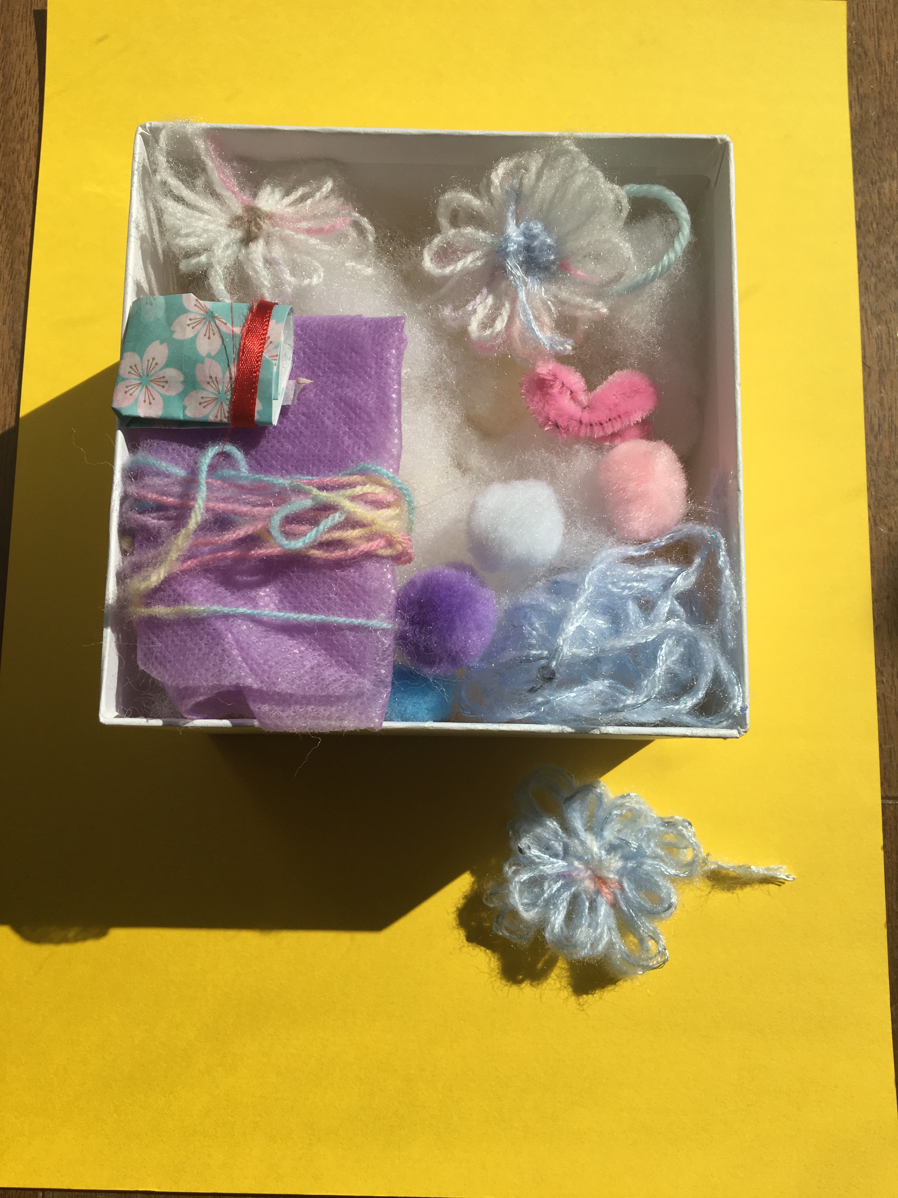 可愛いと思うふわふわと、毛糸で作ったお花をチョイスして、音も楽しめる一品です。