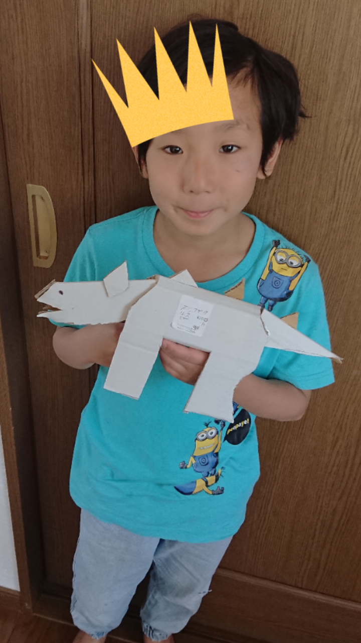恐竜を2匹も作ってくれたのですね!しかも白い段ボールはめずらしい〜レア恐竜だ!
