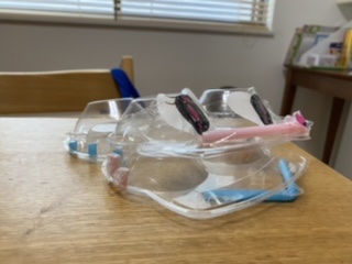 頑張ったところ→ストローでぴょこちゃん(かえる)の歯を作ったところです☆♡