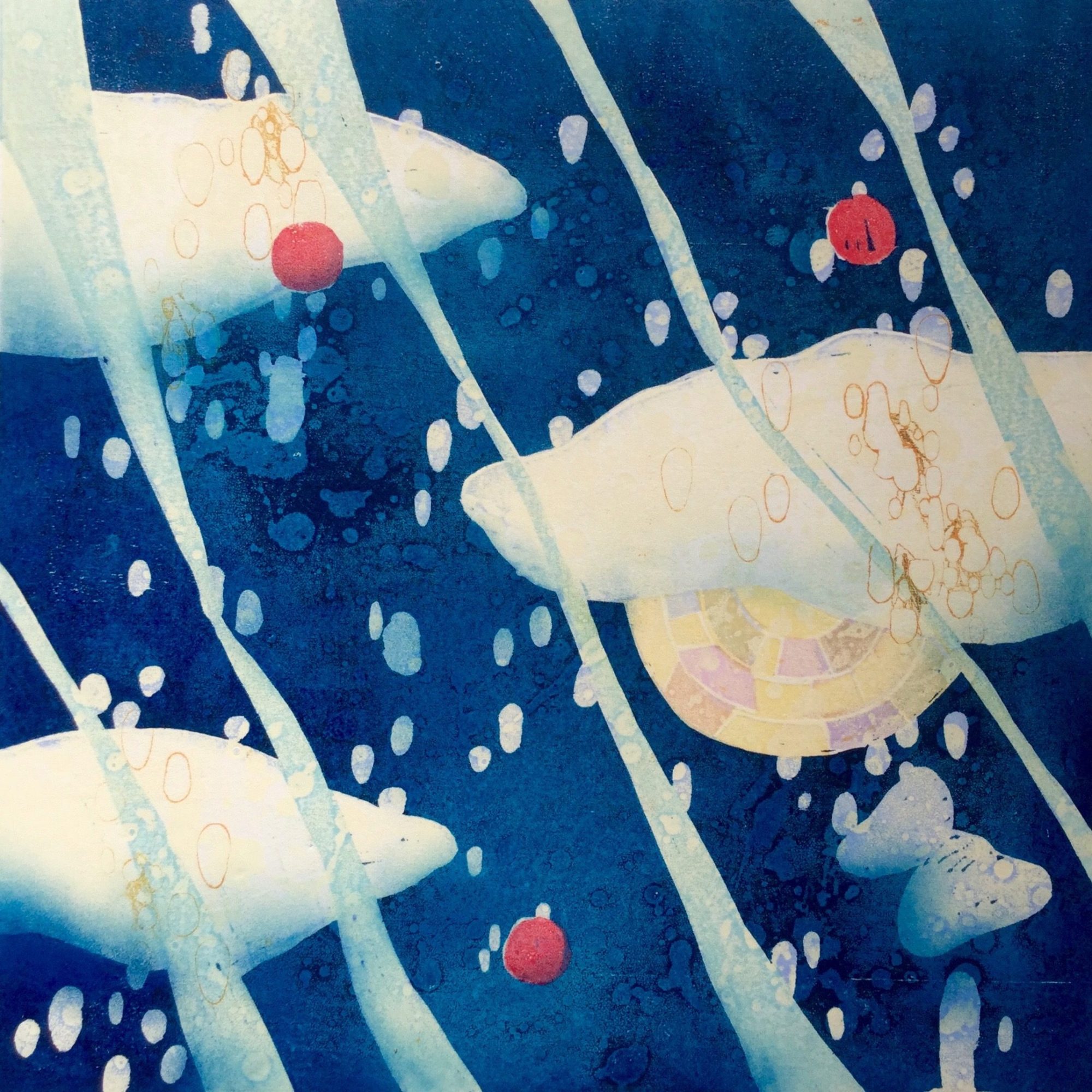 『とおり雨ー2』30×30cm 木版・ベニヤ板を使ったウォーターレスリトグラフ