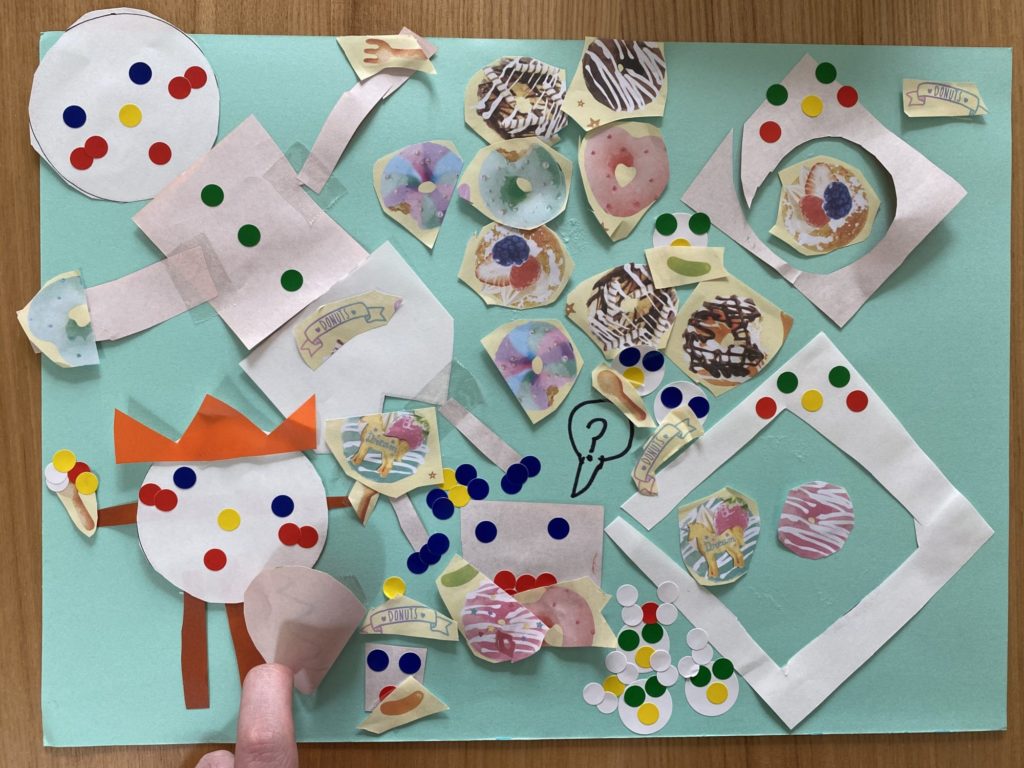 なるちゃん、スゴイね。こんなにたくさんハサミできってつくったンダよね! ビックリだよ! ドーナツやグミがおいしそうだよ! たまごのしかけもたのしいアイデアだね!