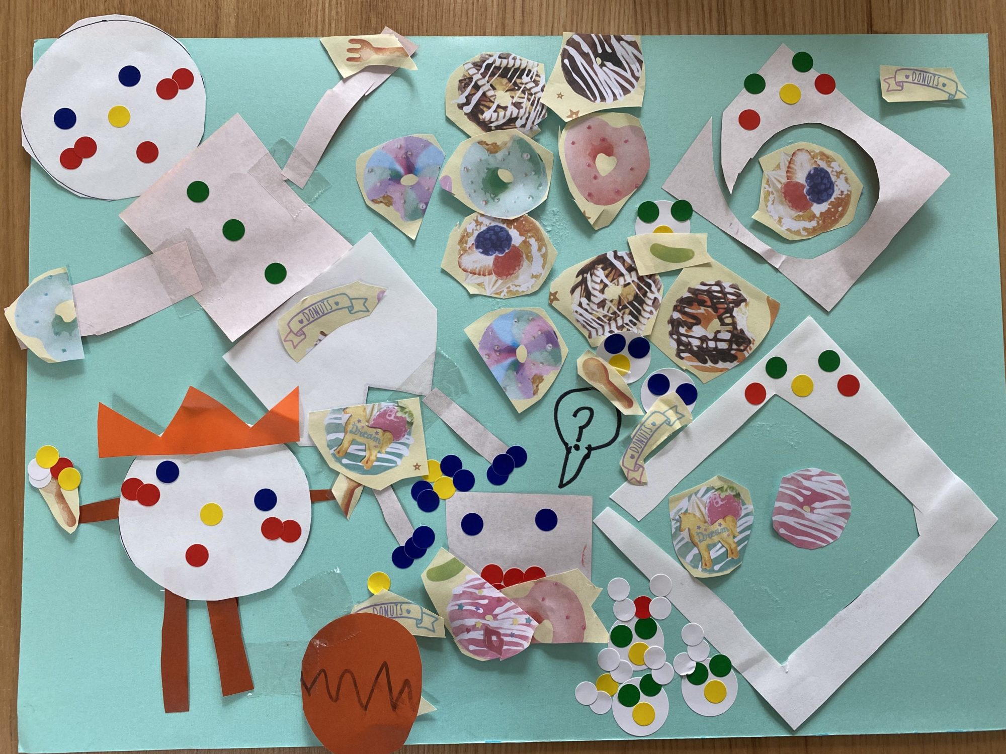 なるちゃん、スゴイね。こんなにたくさんハサミできってつくったンダよね! ビックリだよ! ドーナツやグミがおいしそうだよ! たまごのしかけもたのしいアイデアだね!