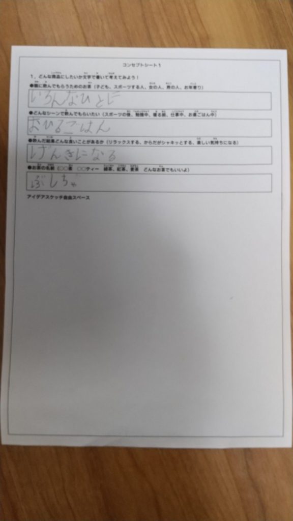 おひるにのむとどんなひともぶしみたくしゃきしゃき元気になるおちゃ。