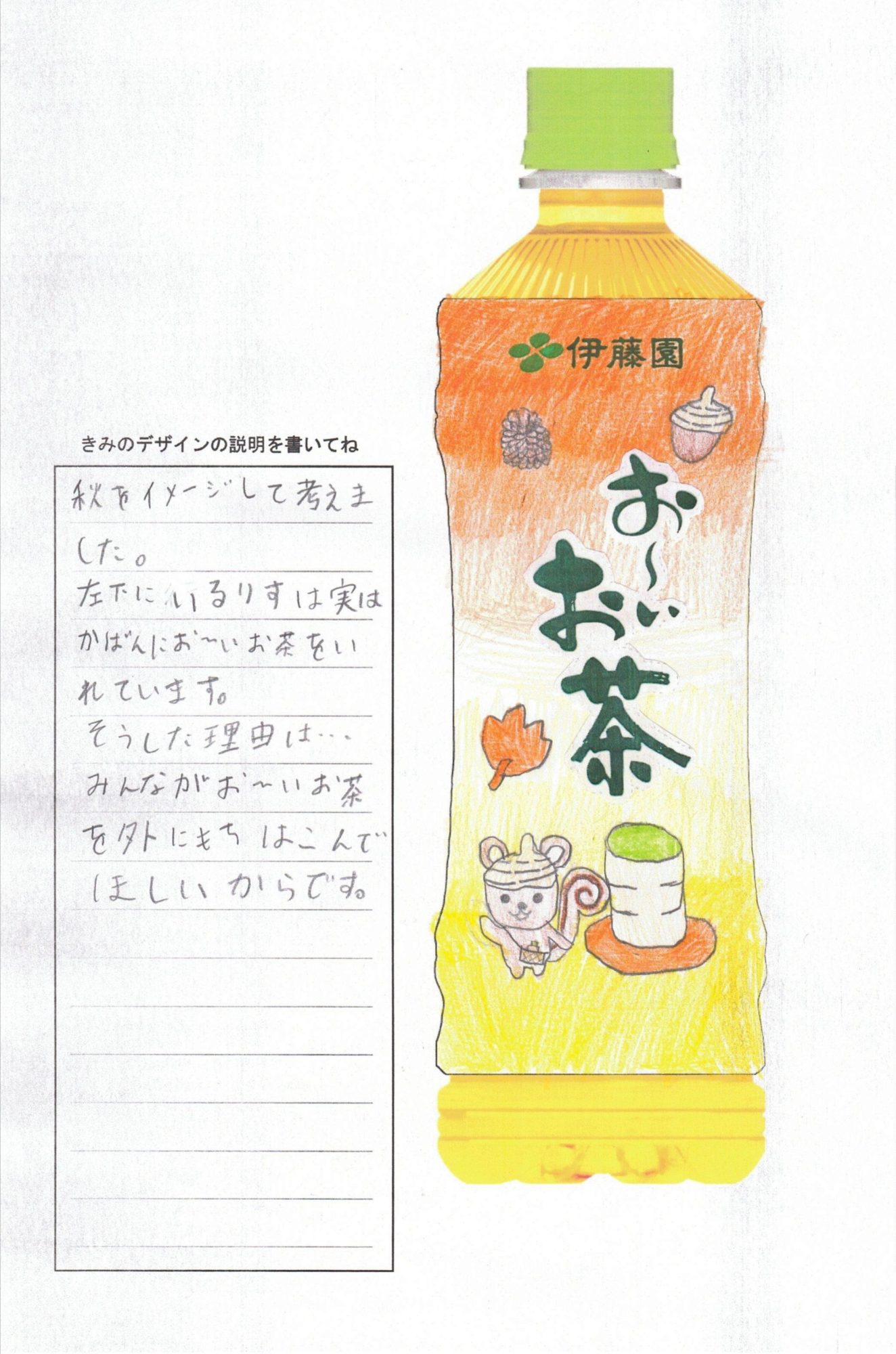 狩野浩之 チャイルドアートサポーター2021年7月4日 10:45 AM お〜いお茶のパッケージデザインカリキュラムに参加してくれてありがとう! 時間が足りなくて質問に全部答えられなかったけど楽しんでもらえたかな? なんだかとってもあったかい感じが伝わってほのぼのしていいね〜! リスさんのカバンにお〜いお茶が入ってるなんてステキ! かわいいデザインありがとう! ログインして返信する ↓
