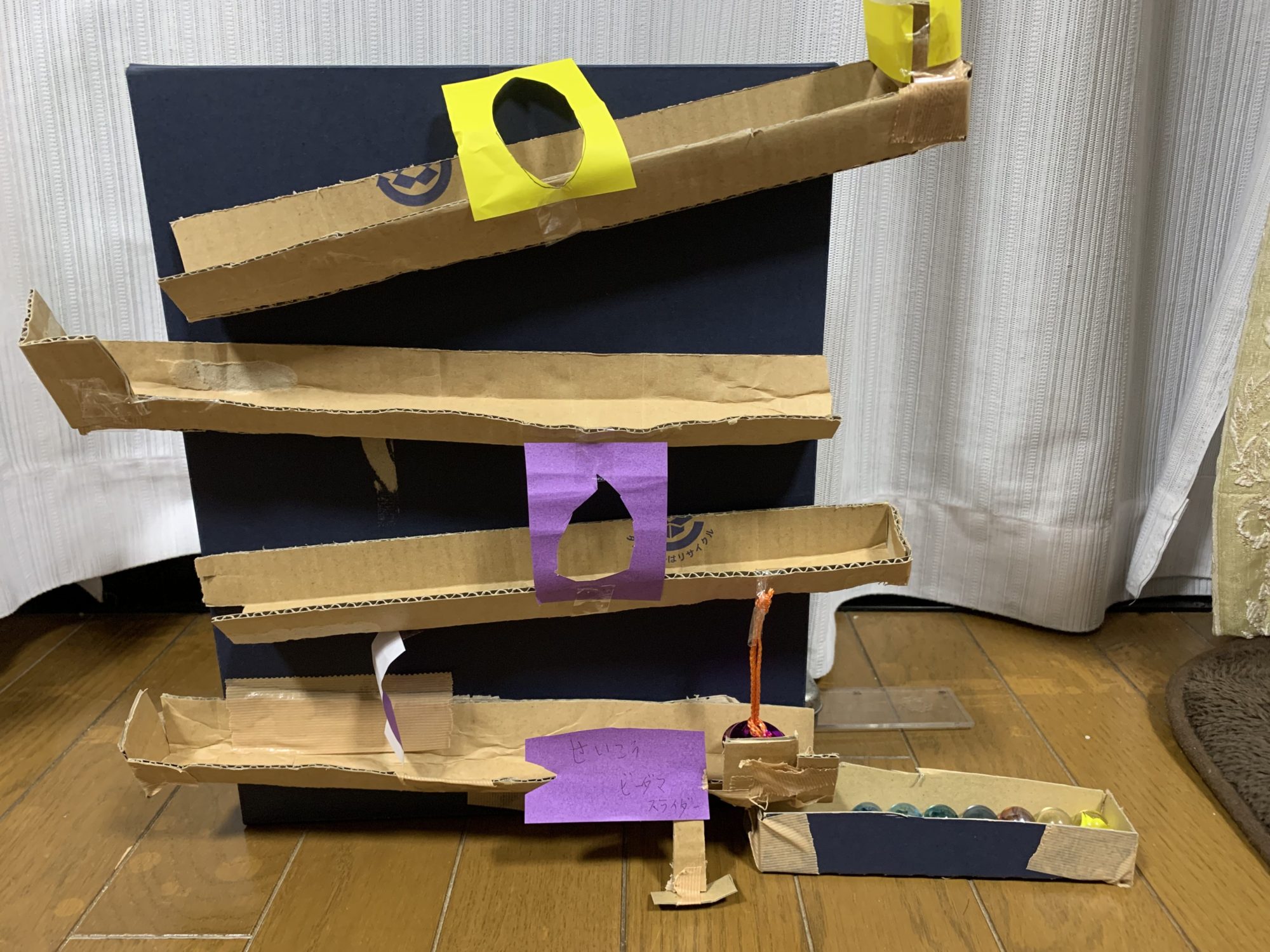 ちゆりちゃん、すごいよ! 動画をみてこれだけ つくるとは、やっぱり ちゆりちゃんは テンサイだよ! そしていろんなところにおりじなるのアイデアがいっぱいつめこまれているんだよ! それが スゴイ! すべりだいをささえているところとか、すずをつけるところとか! サイコーだ!