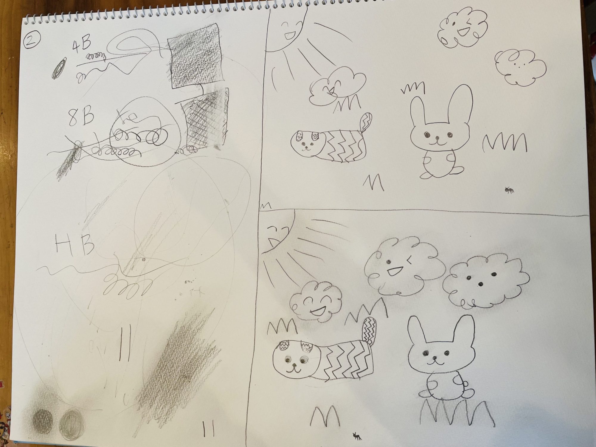 鉛筆を優しく擦ってぼやかしたところがこの絵をさらに印象を優しくしてくれていますね。