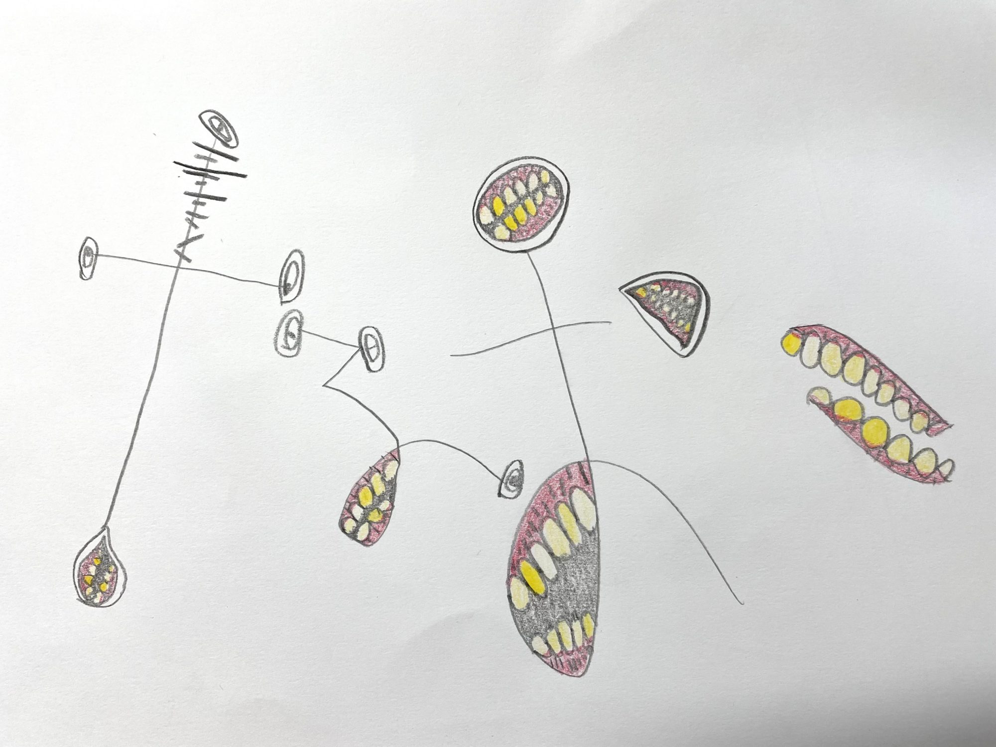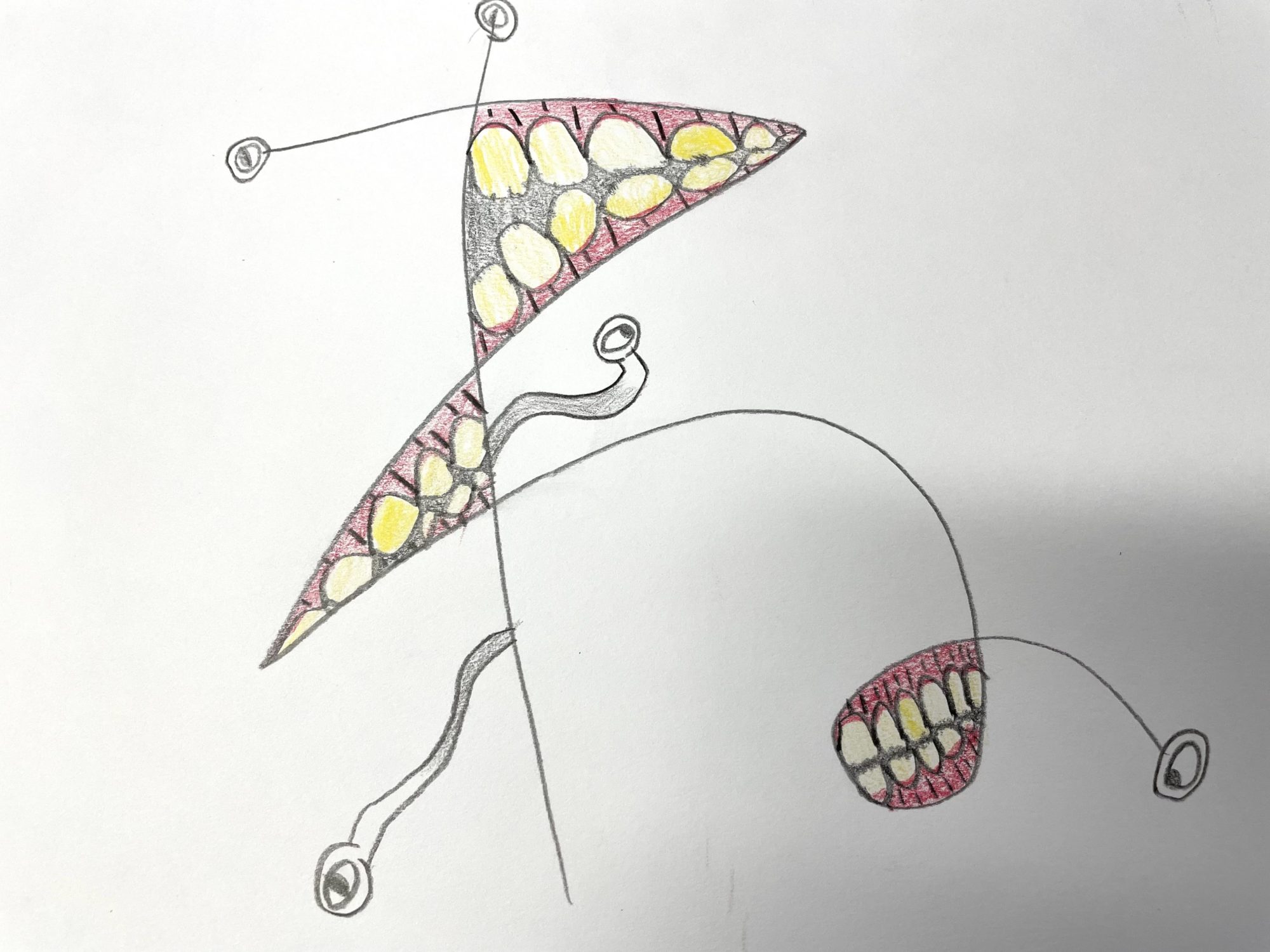 トレバーヘンダーソン氏て言うホラーアーティストの書いた、バケものをモデルにした歯茎です。でも、この歯ぐきは僕が考えました。またどんどん歯茎を作ります。ちなみにトレバーヘンダーソン氏のバケものはクリーチャーっていいます。僕が1番好きなクリーチャーはカートゥーンキャットです。コメントありがとうございます。