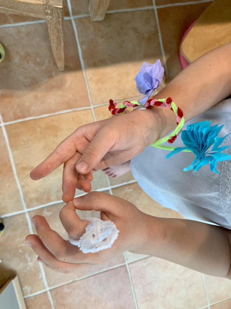 ハニカムペーパーで鳥の飾りやアクセサリーも作りました。