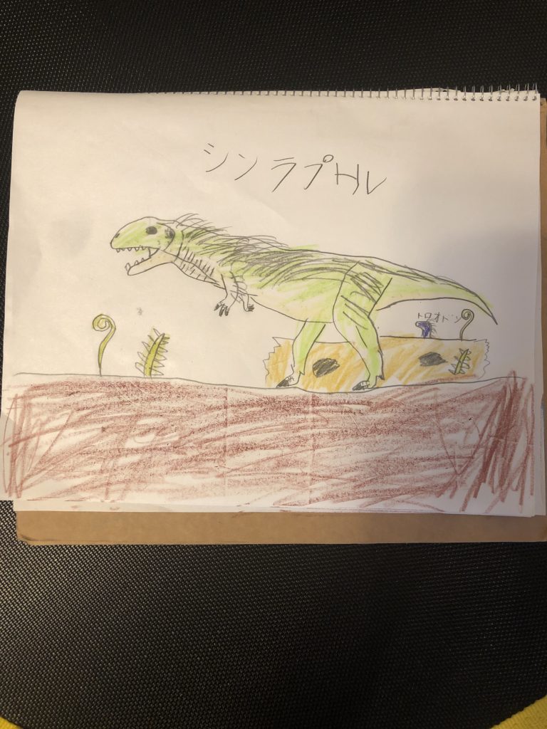 haruくんの頭の中にえがいたきょうりゅうのせかいが、しっかりかかれていますね。