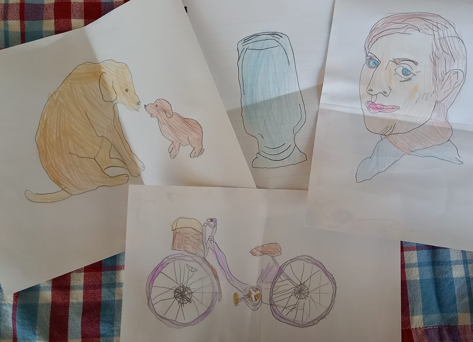 人間や動物、グラス、自転車とどれも構造を捉えるのが難しいものだとおもいますが、違和感なく、その物だと見えるのに加えて魅力があるので、いい絵だなあ、、と思いました!!!!!!