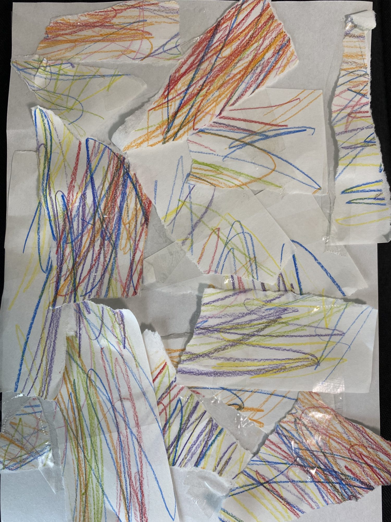 一つの紙に描いた線を切り貼りすると、手でちぎったり、ハサミで切ったり、複雑になって見えたり、その箇所によって違う魅力があるので見てて楽しくなります!!