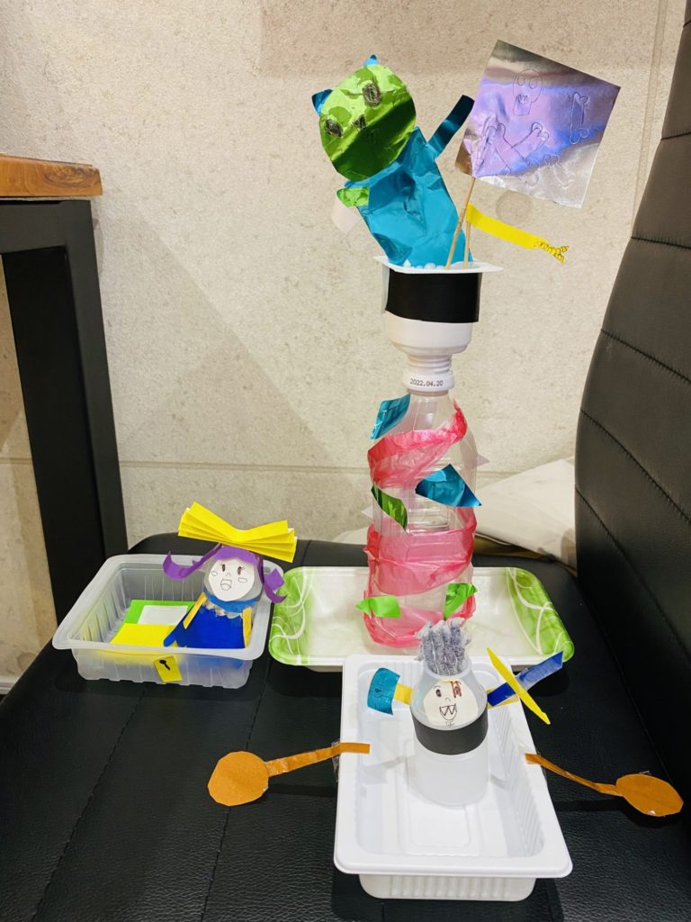 いろんな材料を使って、船のオールや帆、剣やドレスができていて、午前中がすっごく楽しかった時間というのが伝わります・・!