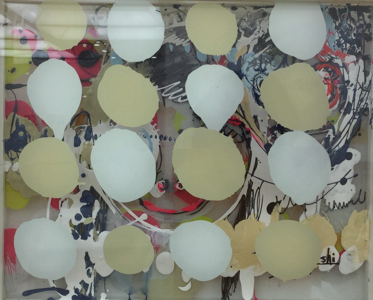 2016年 ミクストメディア ガラス板 アクリル絵の具 エナメル塗料 ペンキ コラージュ素材