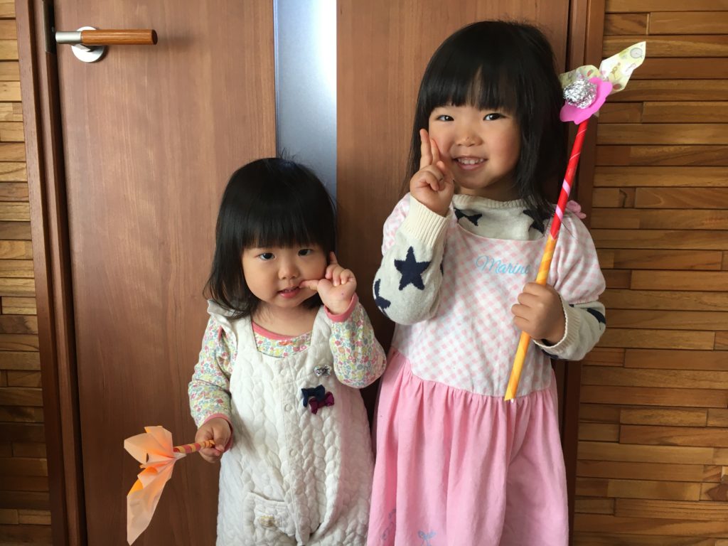 みくちゃんも、妹ちゃんも、なが~くてかわいいステッキができたね!