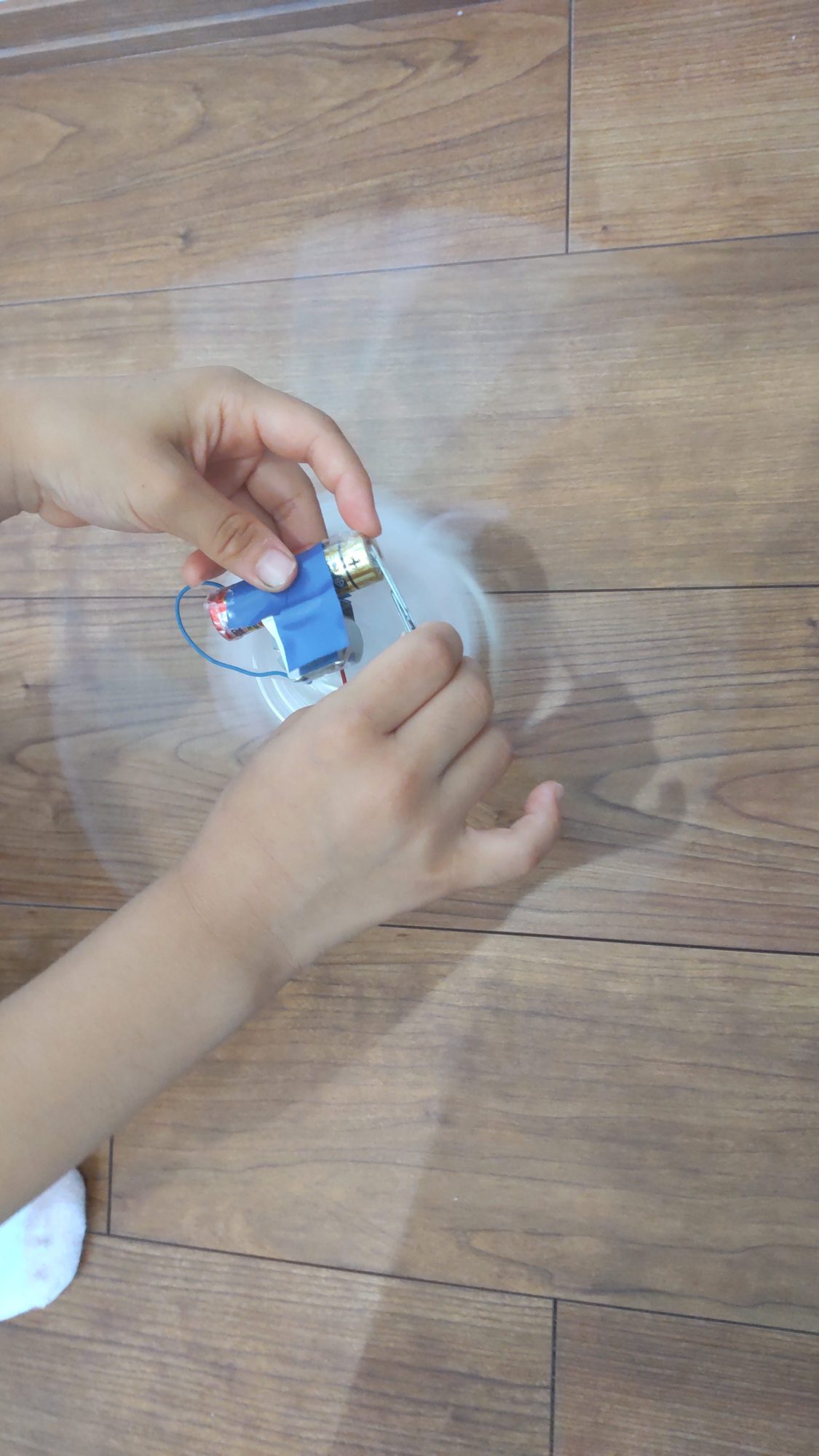 スゴイ! こうそくカイテンでそうじしてくれるイカなんだ! 毛糸のあしでそうじができるしかけのアイデアがすごいな!