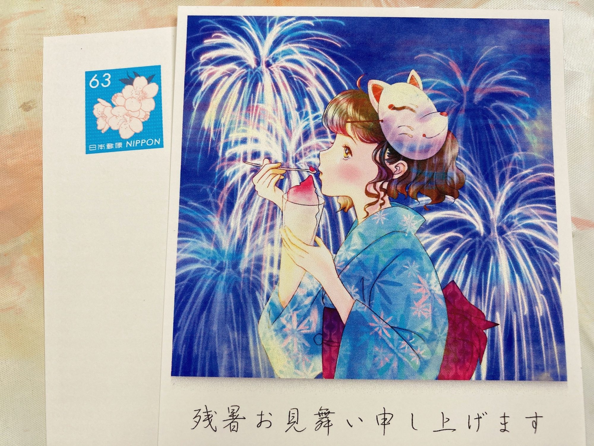 残暑見舞いの葉書用に描きました😊