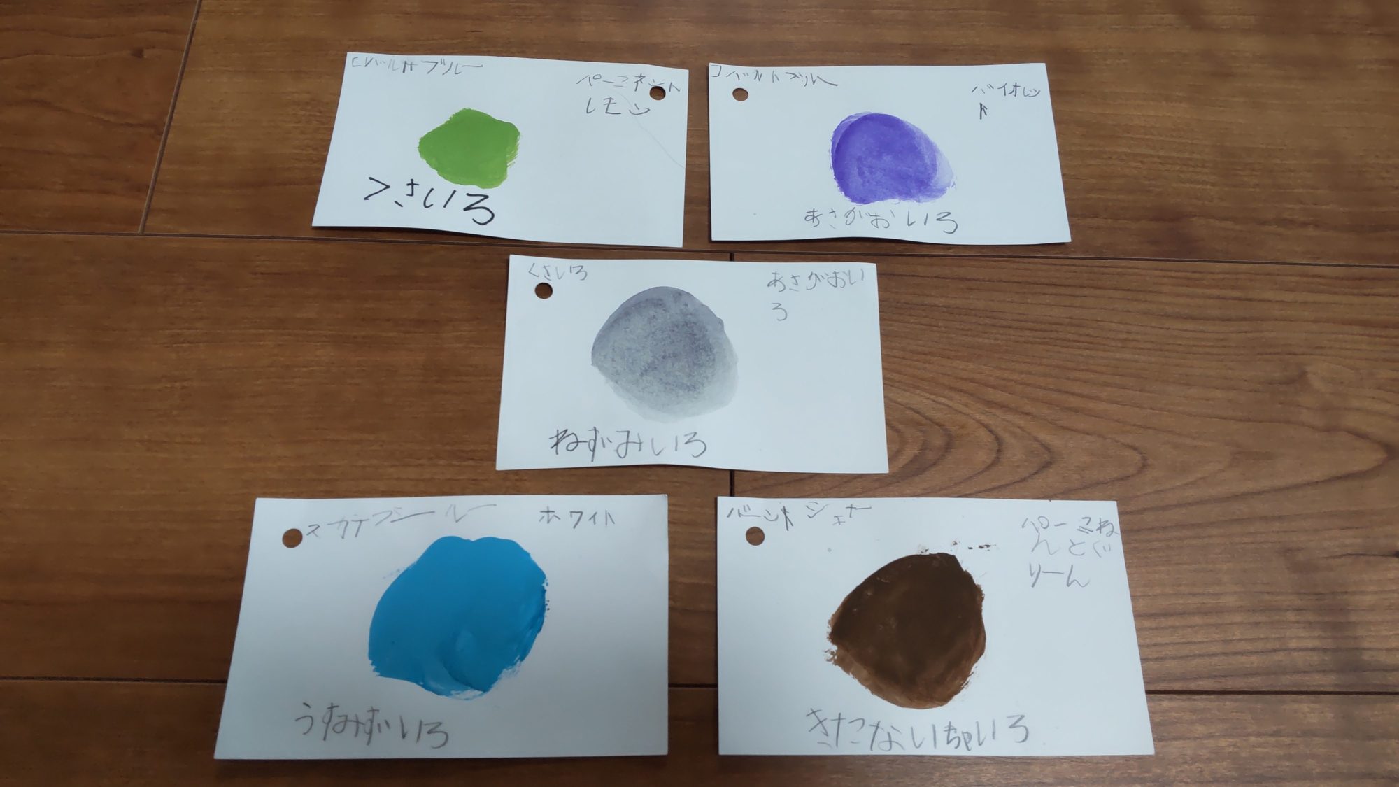 たくさんのいろを まぜたんだね。えのぐのチューブから そのまま出したいろもきれいだけれど、まぜてできたいろも すてきだよね。できたいろをみて、どうかんじたかな?「きれいだな」「きたないな」「おもしろいな」「おしゃれだな」など、いろんなことを かんじるはず!その、かんじたことを たいせつにしてほしいな。これからも、たくさんのいろをつくったり、みたりしてみてね。そして、さきさんがいちばんすきだとかんじたいろをみつけたら、おしえてね☺