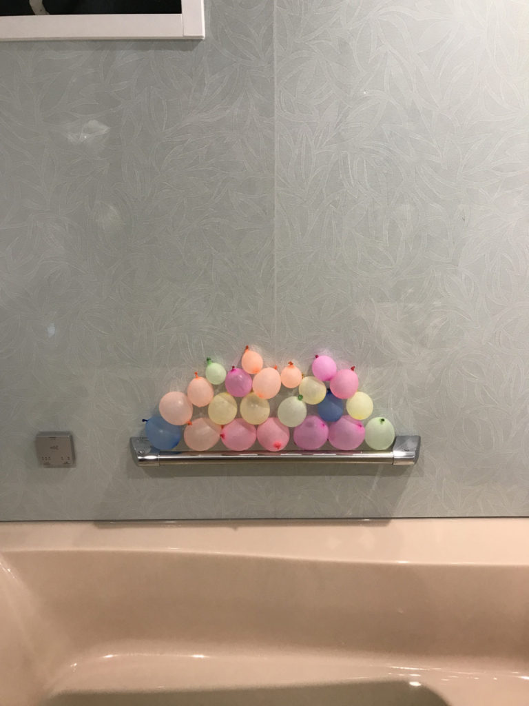 水ふうせんをこんな風につみあげていくって、思いがけないアートになりますね! なにかのフルーツがつみあげられているようにも見えてきますね!