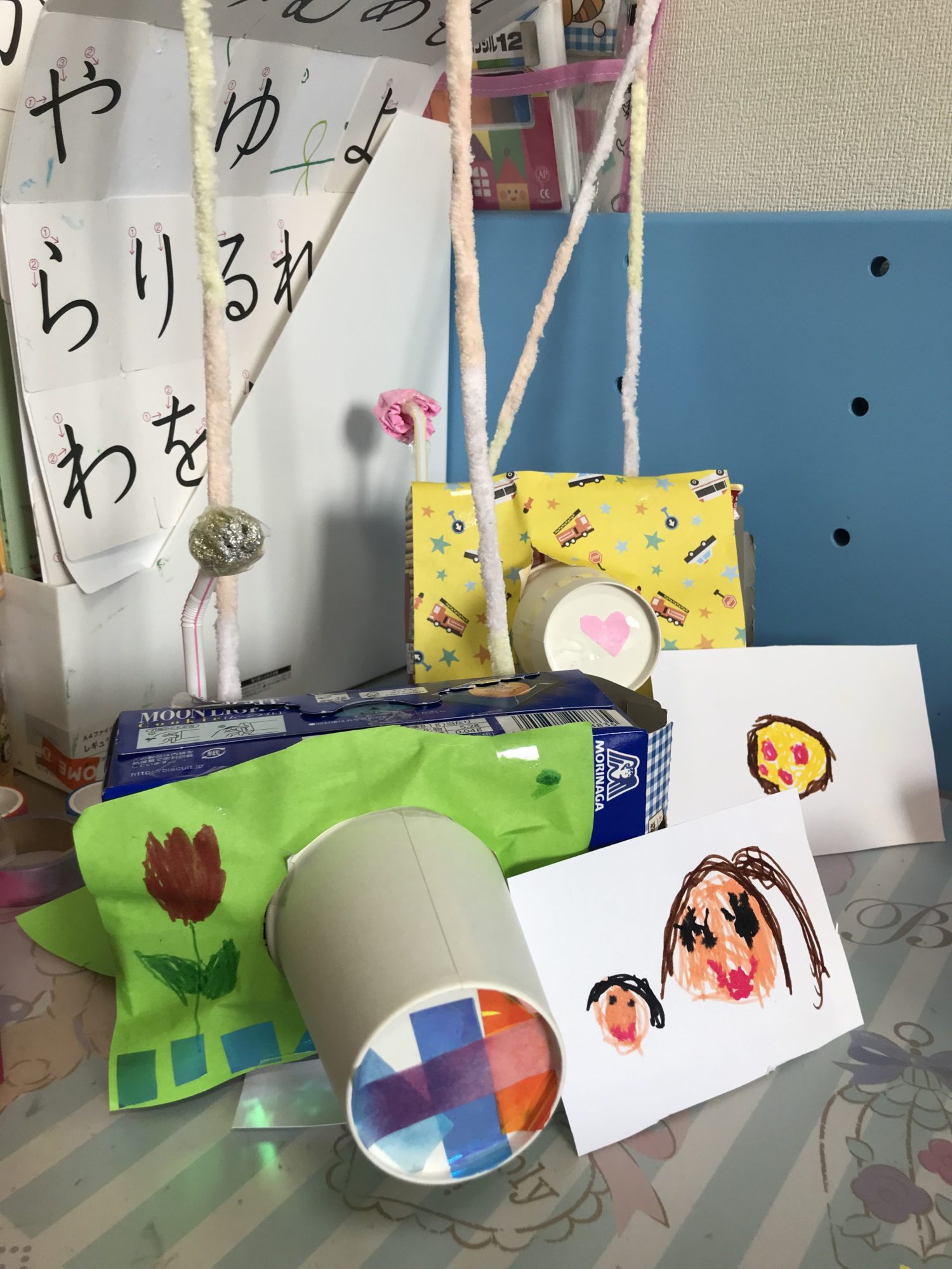 カメラもふたつも作ったんですね。おりがみでおしゃれにかざってあって、どちらもすてき❣️スイッチの部分におりがみを丸めてつける工夫もいいですね👍