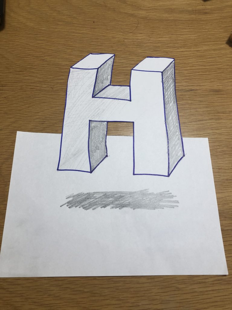 Hの真ん中の所はカッターで切り抜いたのです。