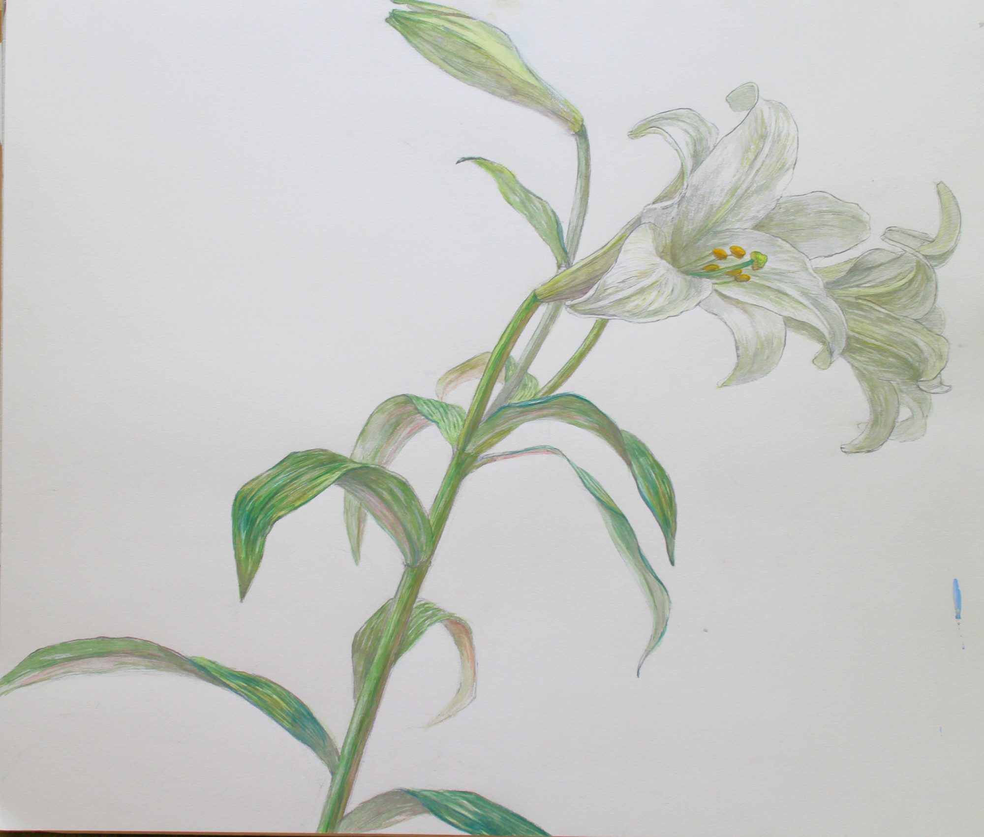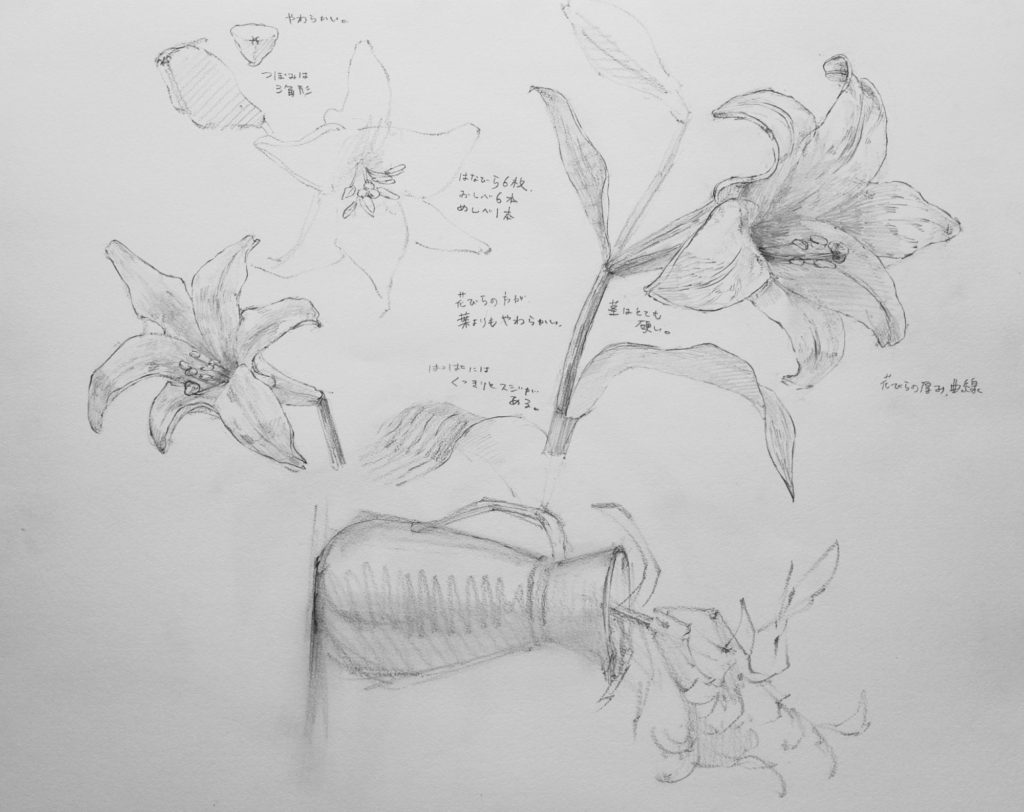 和紙(わし)や岩絵の具(いわえのぐ)など、日本にむかしからあるものを使って百合の花かきました🎨