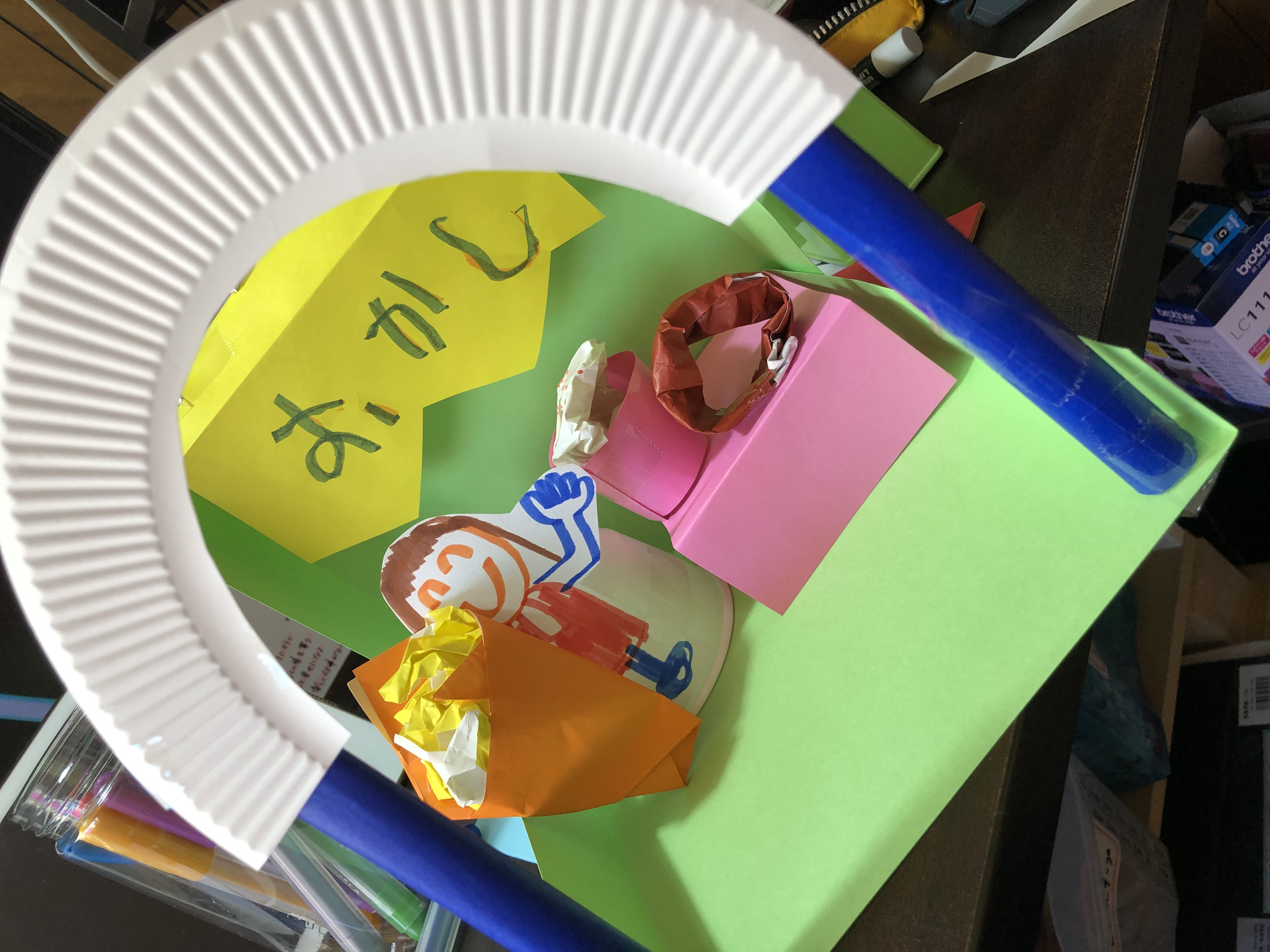 ズームを使ってみんなでお店やさんを作りました。 時間がなかったので、ズームが終わった後に紙皿を使ってパワーアップしました。