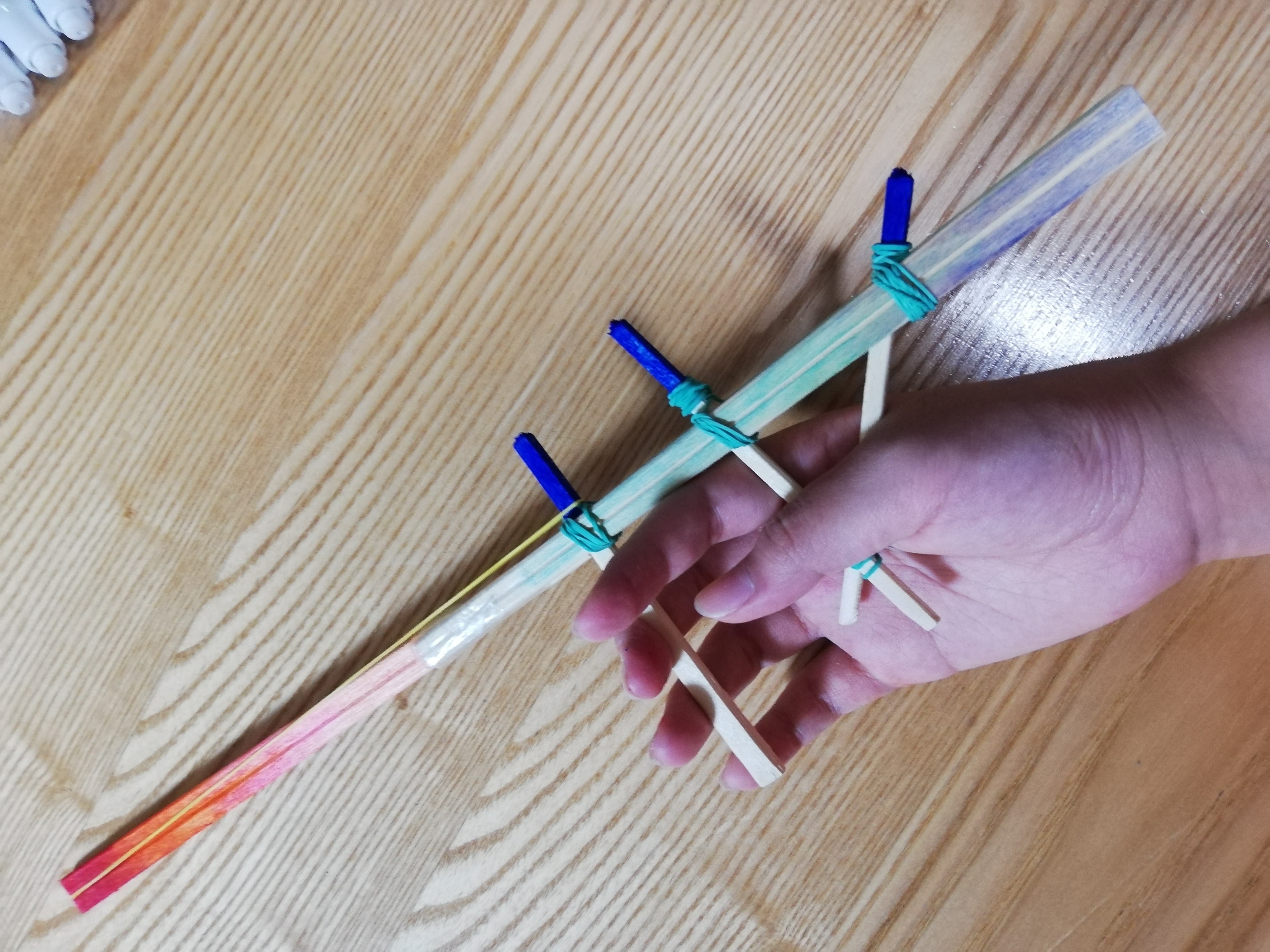 これはアートだわ! わりばしてっぽうも こんなふうになるのか!