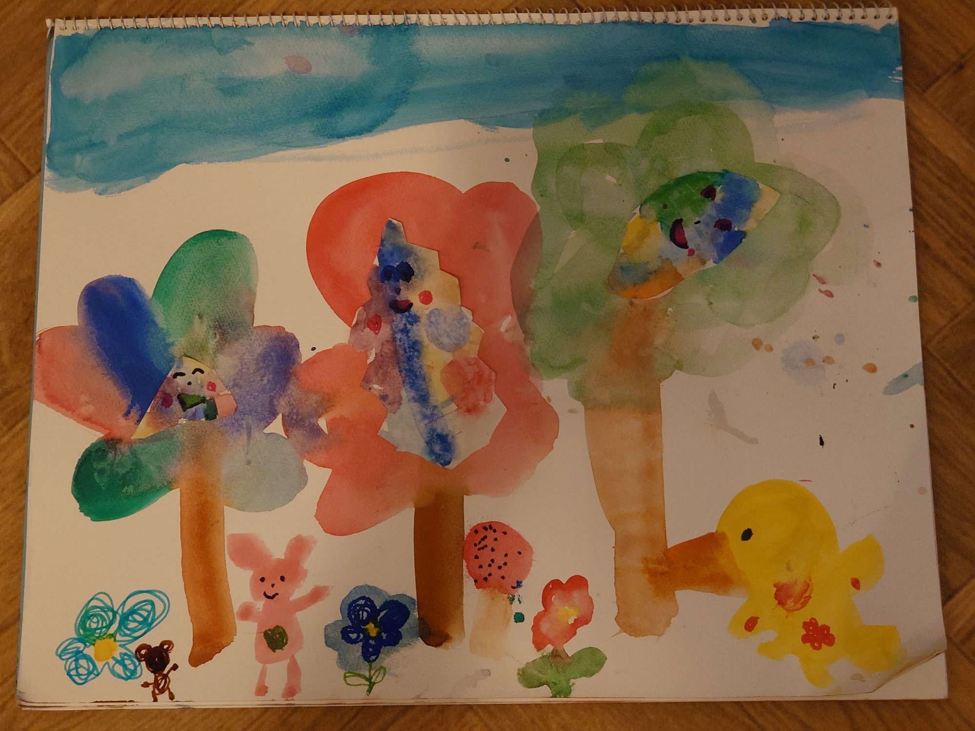 2021年10月13日 9:38 AM うさぎさん とりさん はっぱさん、たくさんのおともだちがあつまる たのしい森ですね。 はっぱさんの虹色がすごくきれいで 、しあわせな きもちに なりました✨ えのぐが じょうずに つかえていますね! いろの えらびかたが きれいなところがとてもすてきです✨ ログインして返信する ↓