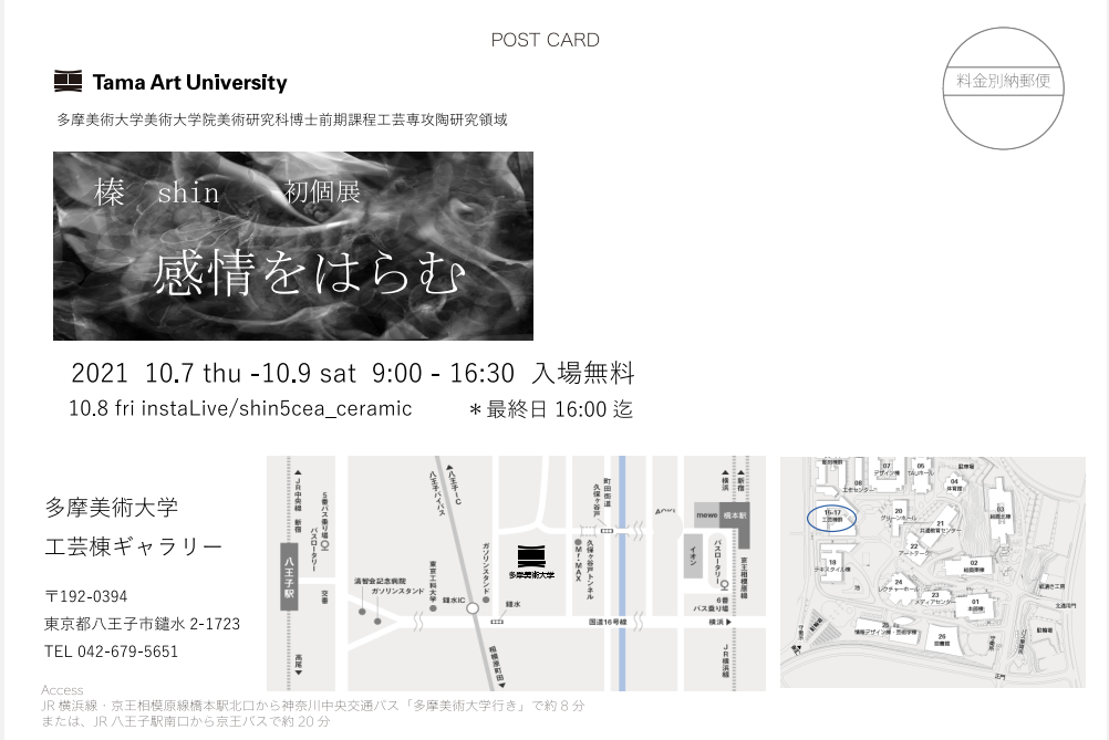 多摩美術大学工芸ギャラリー 10/7(木)~9㈯ 9:00~16:30 最終日16:00