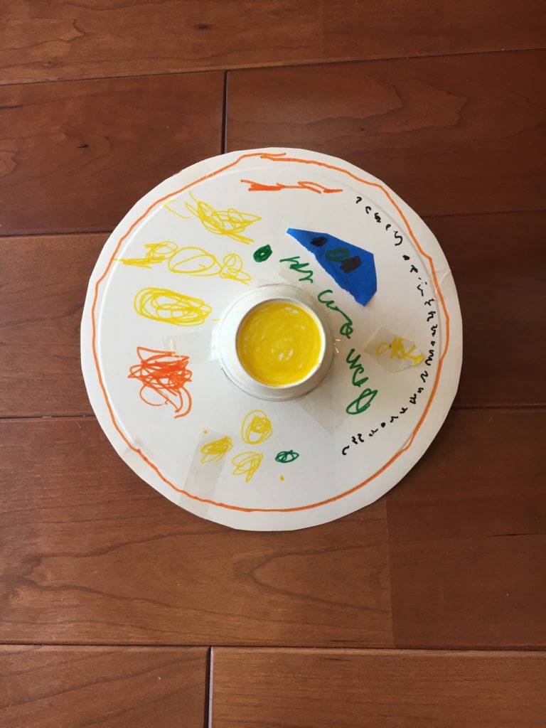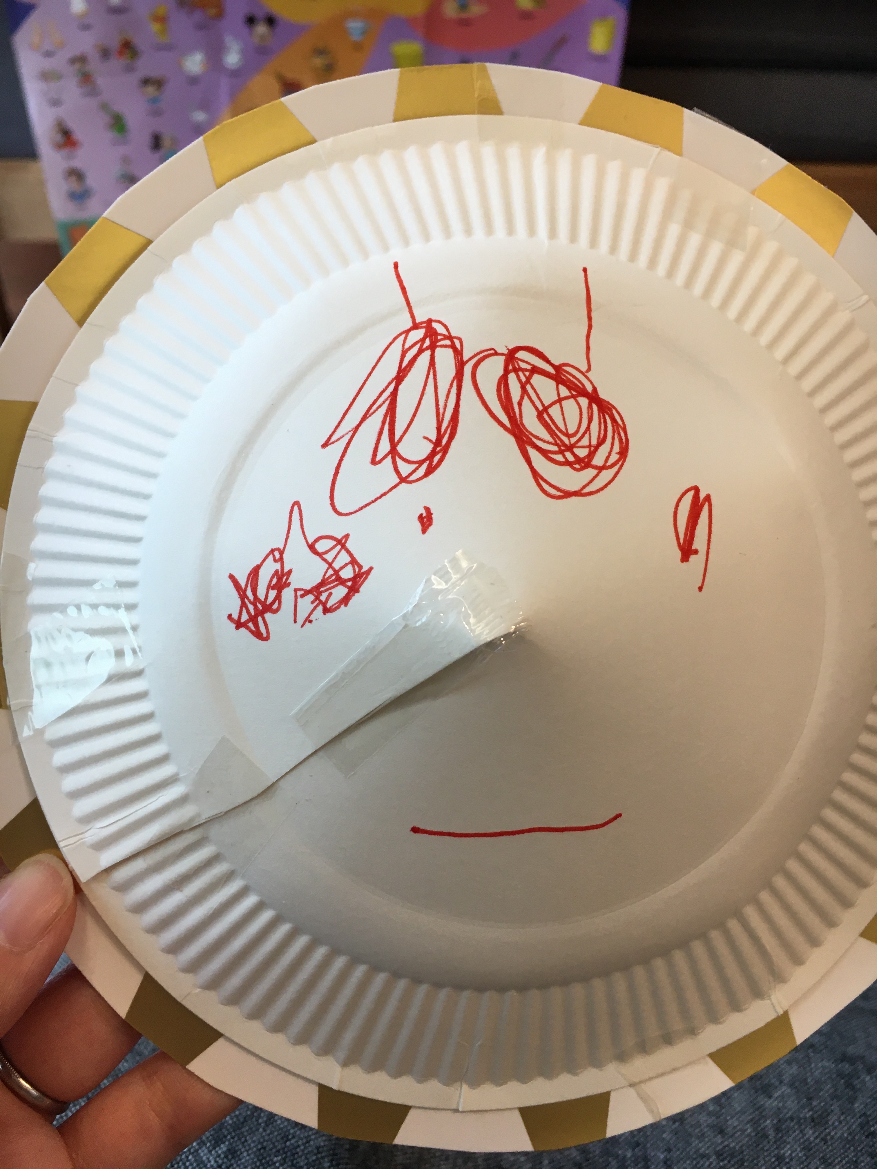遊園地をイメージしてお絵描きしたそうです。うしろにママの顔も描いてくれました(^^)
