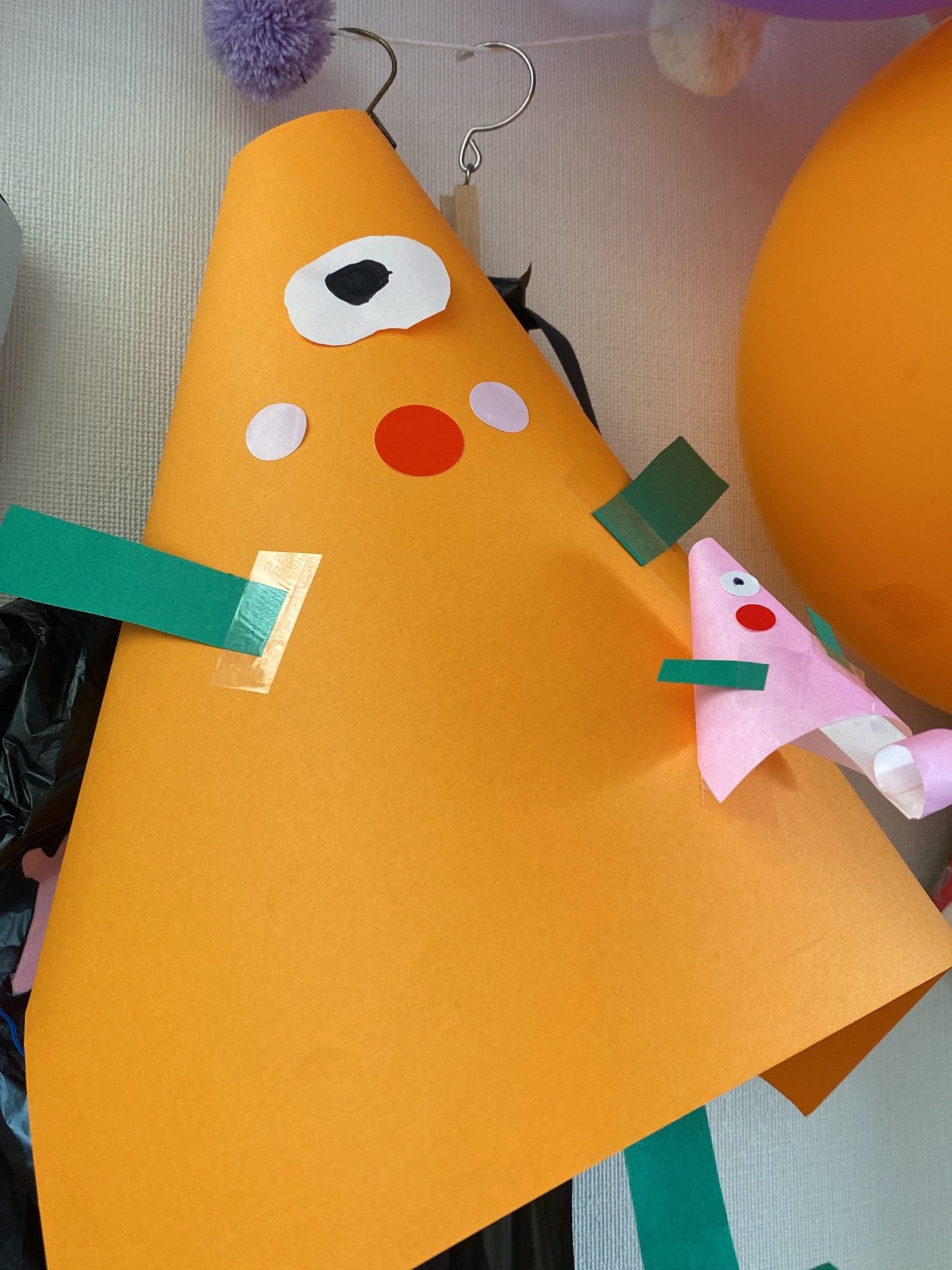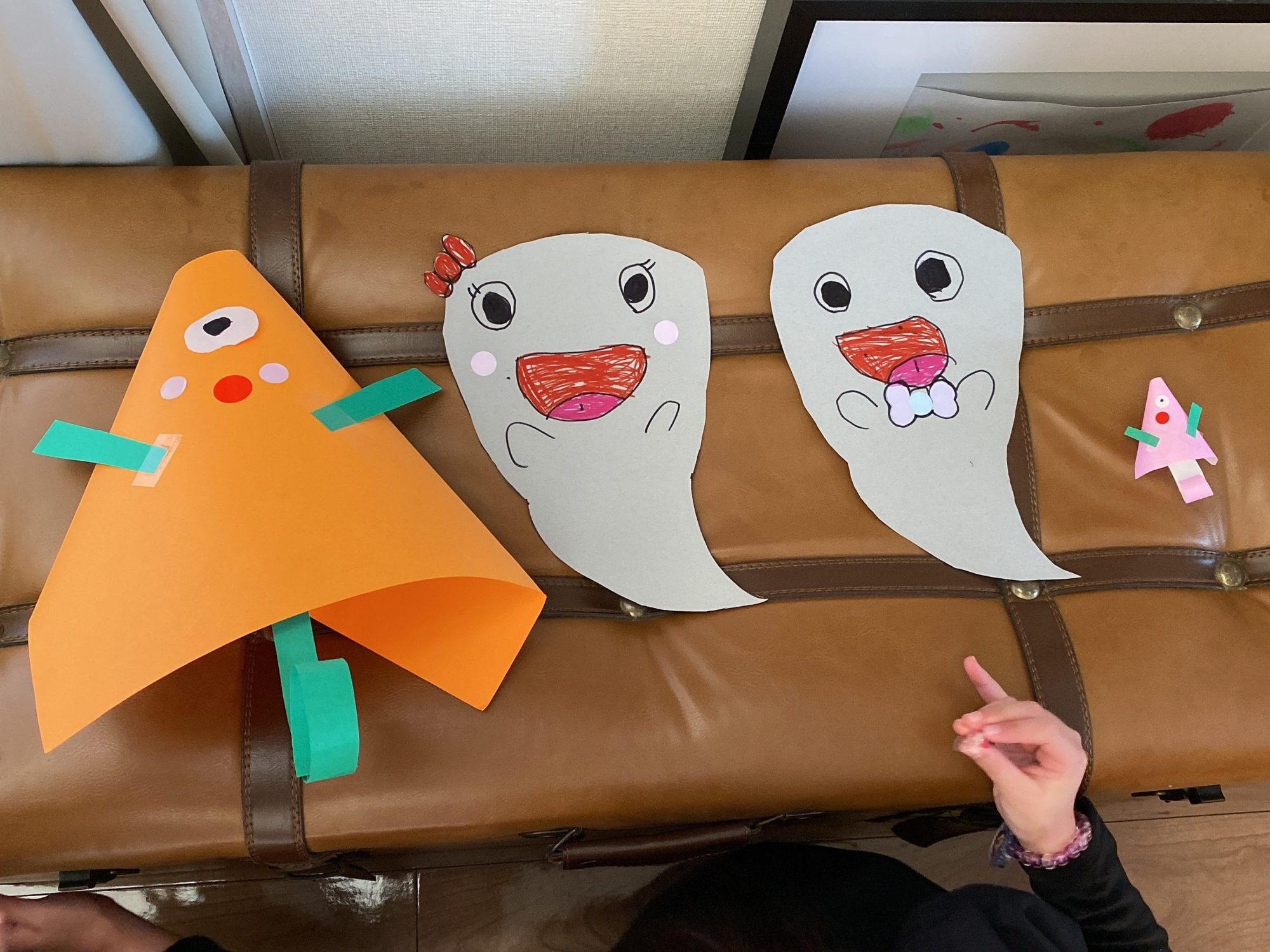傘おばけは、シールを使って顔を作っているのがおもしろいです!