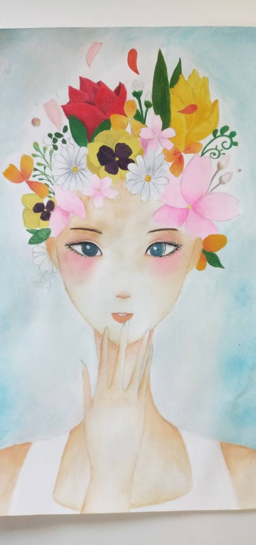 お花の配置や、瞳の線の強さ、とても繊細なバランスです