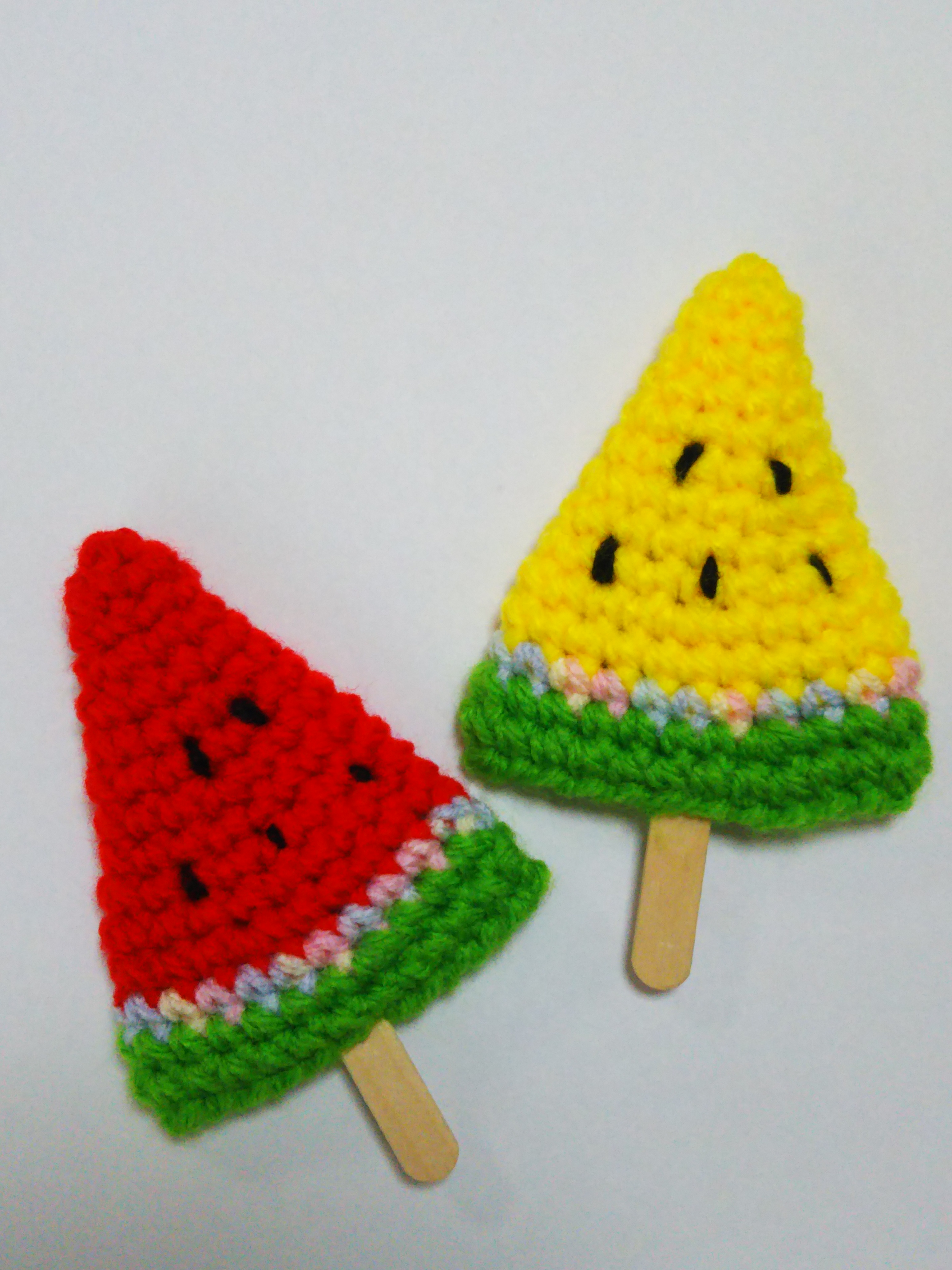 さたち (アトリエトントン,)2020年3月31日 8:01 AM ありがとうございます。 編み図を見ると、アイスの棒の部分も 毛糸で編んでスイカバーになるように 書いてあるのですが 私は単に「スイカ」として完成させました。 しかし、子供達が本物のアイスの棒を 隙間から無理矢理ぶっ刺して リアルスイカバーに(笑) ログインして返信する ↓