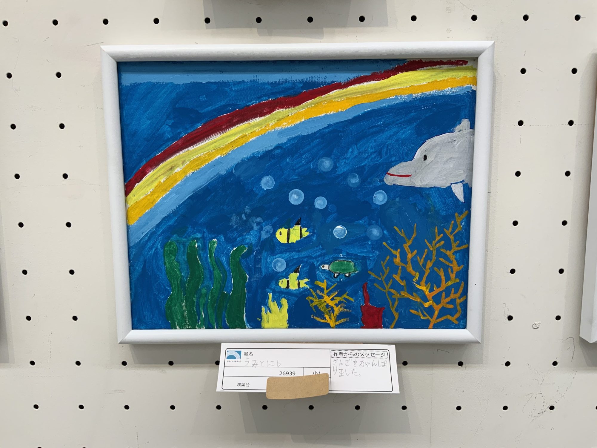 うみのなかににじがあるところがふしぎなかんじですね! さかなたちもめずらしいきれいなにじがでてびっくりしているんじゃないかな?