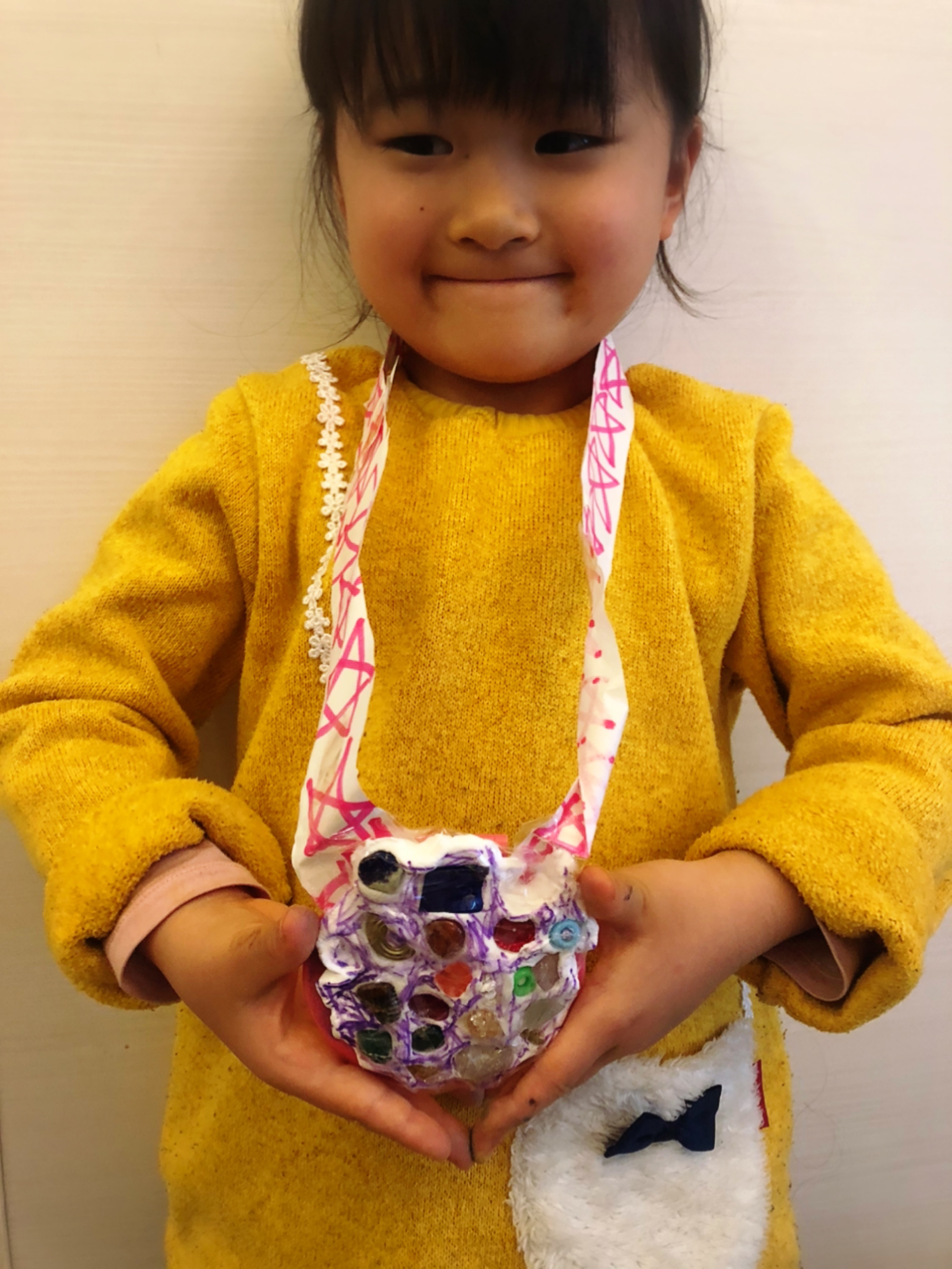 くびにかけるひもも、自分でお星さまをたくさん描いたんだね。すっごくおしゃれ!!