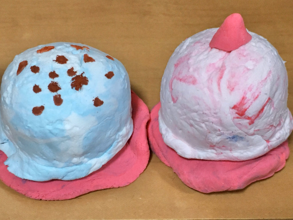 おおお! ほんものそっくり! これをアイスやさんのおみせにおいてみたいな! だれかまちがえて たべちゃうね!