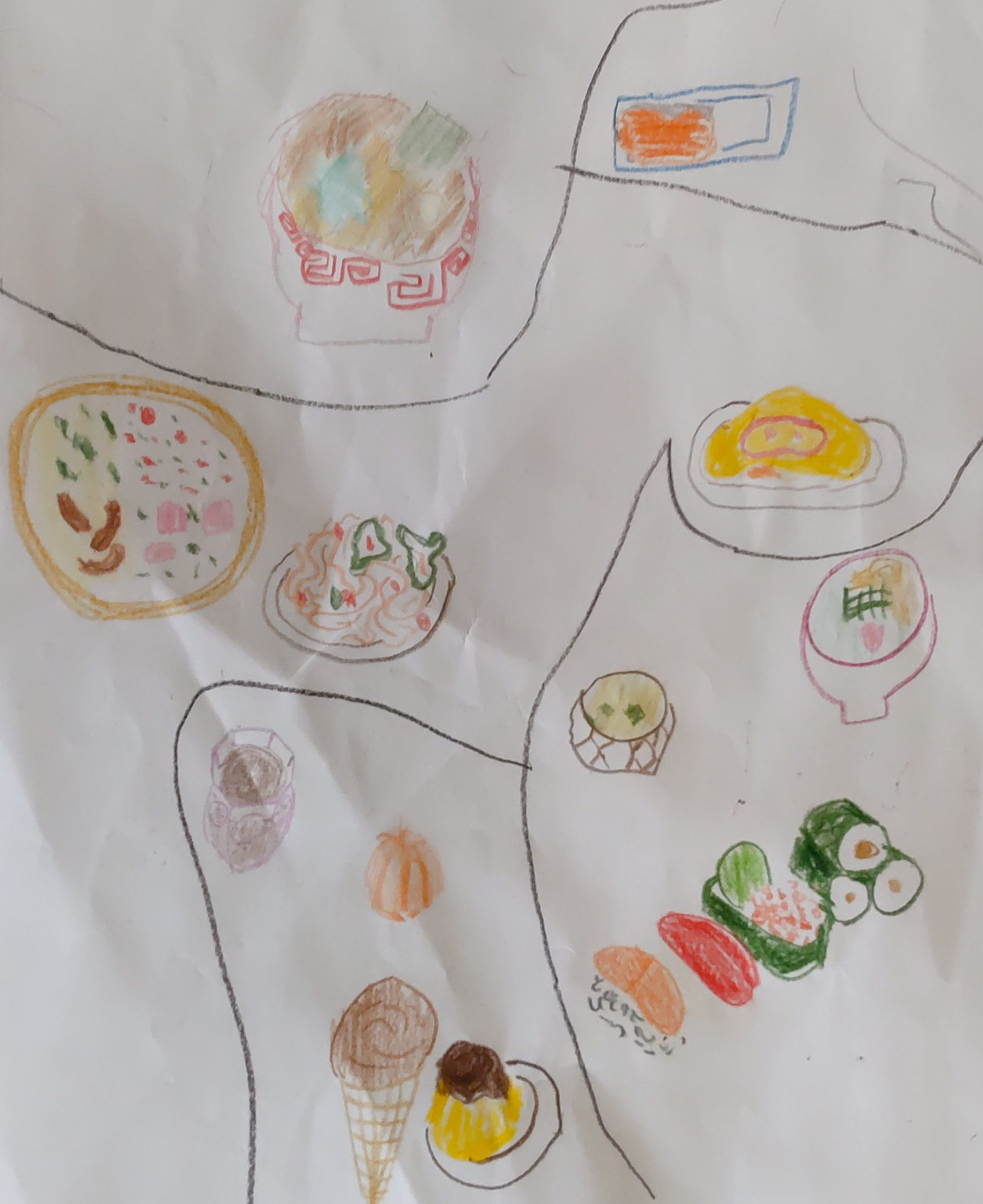 ラーメンのどんぶりの模様まで描けててすごーい!