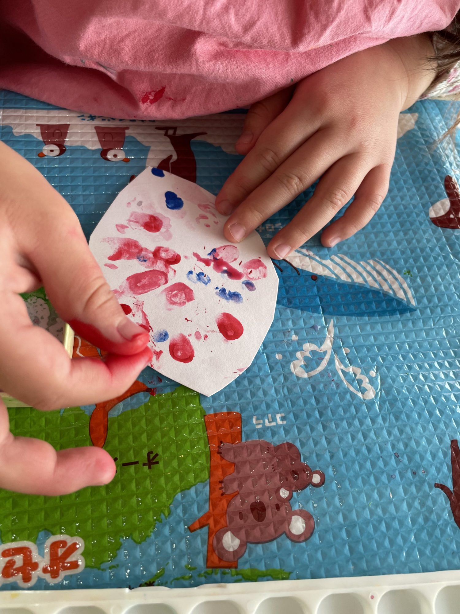 ほんとに色んな点々を試している感じでした。筆だけでなく指を使いたくなってしまうのは、いつもの流れでしたが…😅筆から取れてしまった細い毛を使って描いてみたり、実験しているような雰囲気でした。