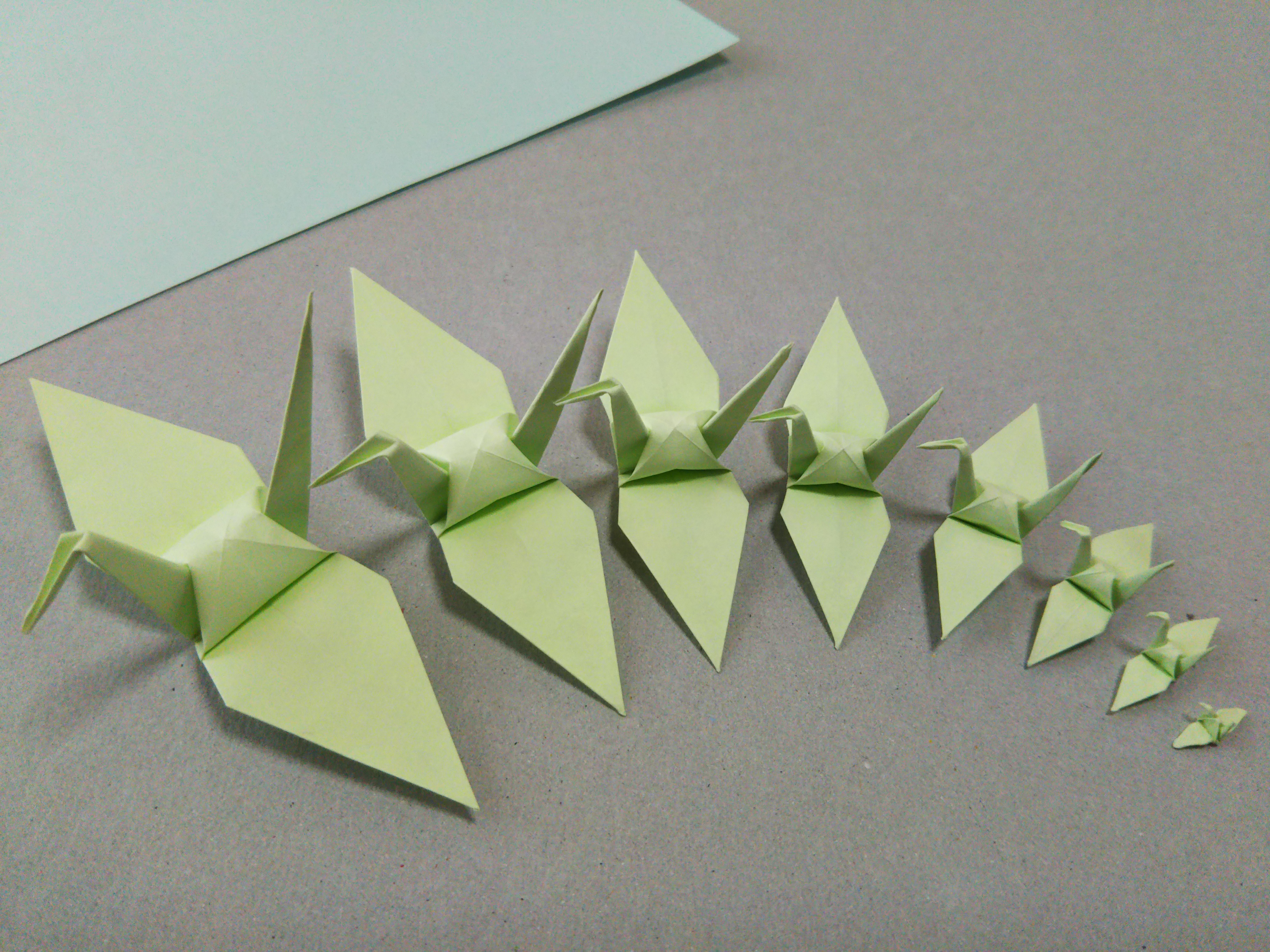 と、目にしたさたちさんのマトリョーシカのような折り鶴にびっくり!最後のかわいい小鶴ちゃん❤️子孫繁栄〜願いを込めて