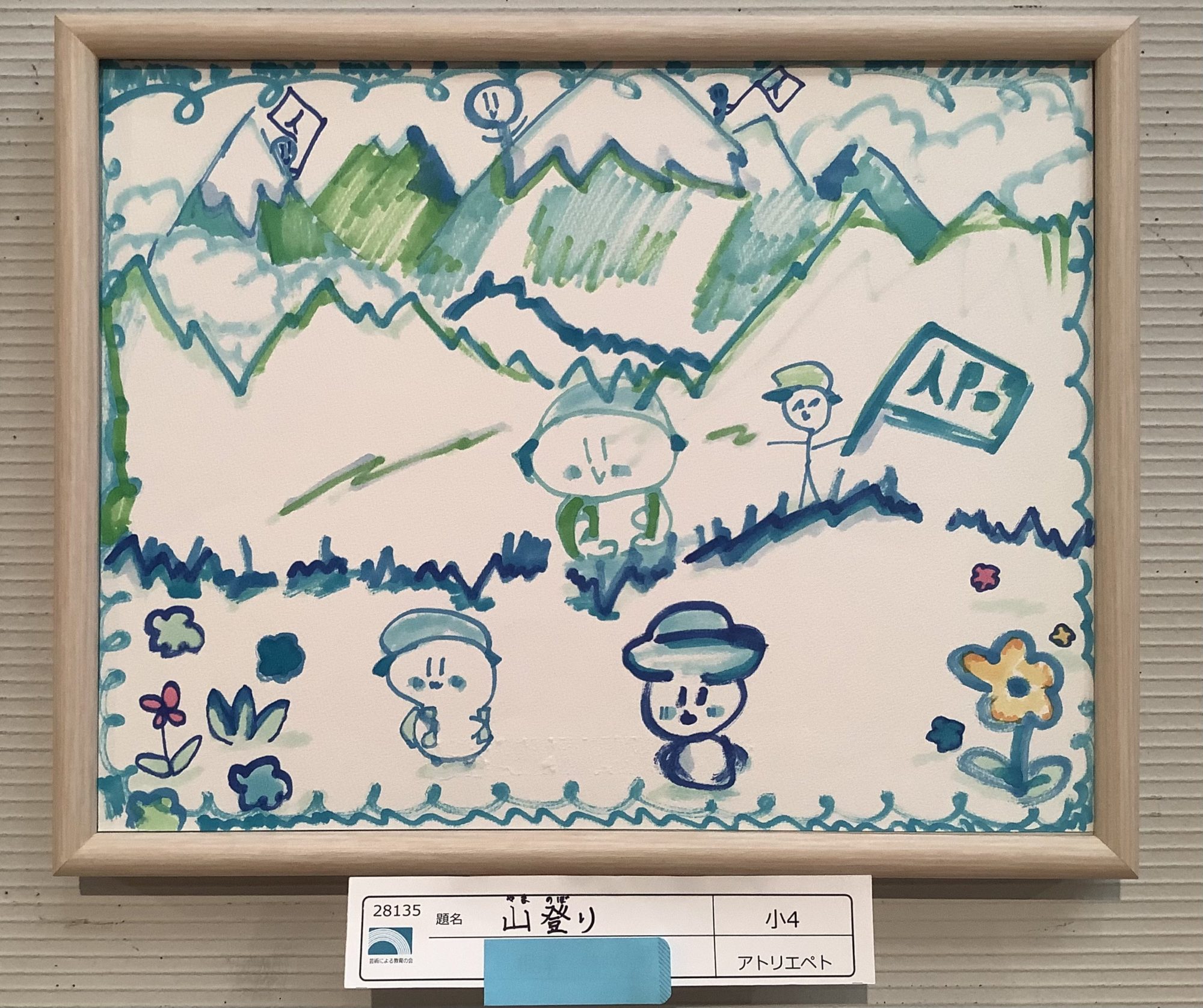 展覧会出品おめでとうです! おもしろい絵のタッチですね! これはマーカーで描いているのかな? 楽しいふんいきの作品をみていると、自分も山にピクニックにいっているみたいな気持ちになってくるな!