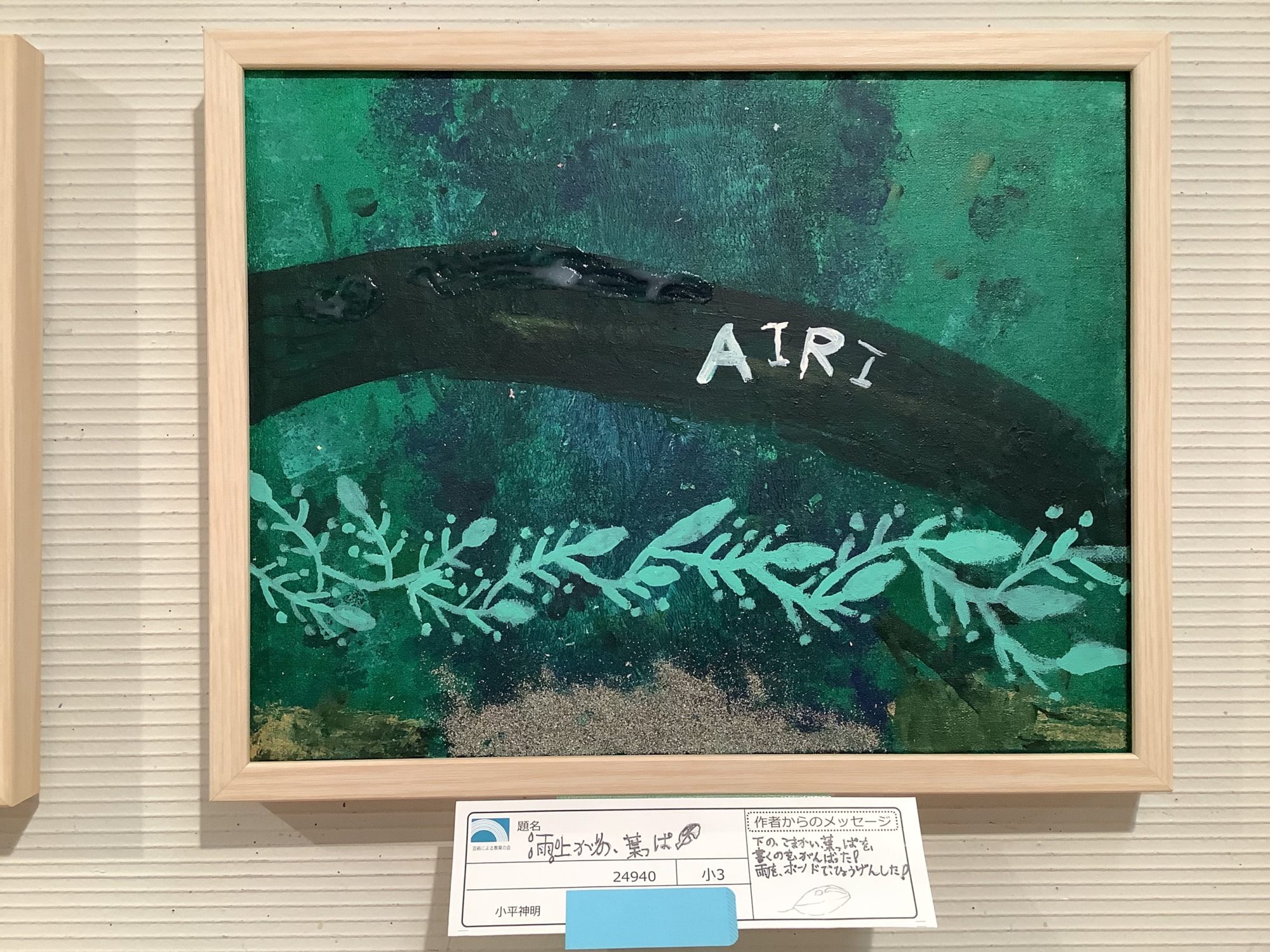 題名の通りにボンドを使って、葉っぱに乗った雨のツルッと感が出ていて、今にもこぼれ落ちそうなところが好きです