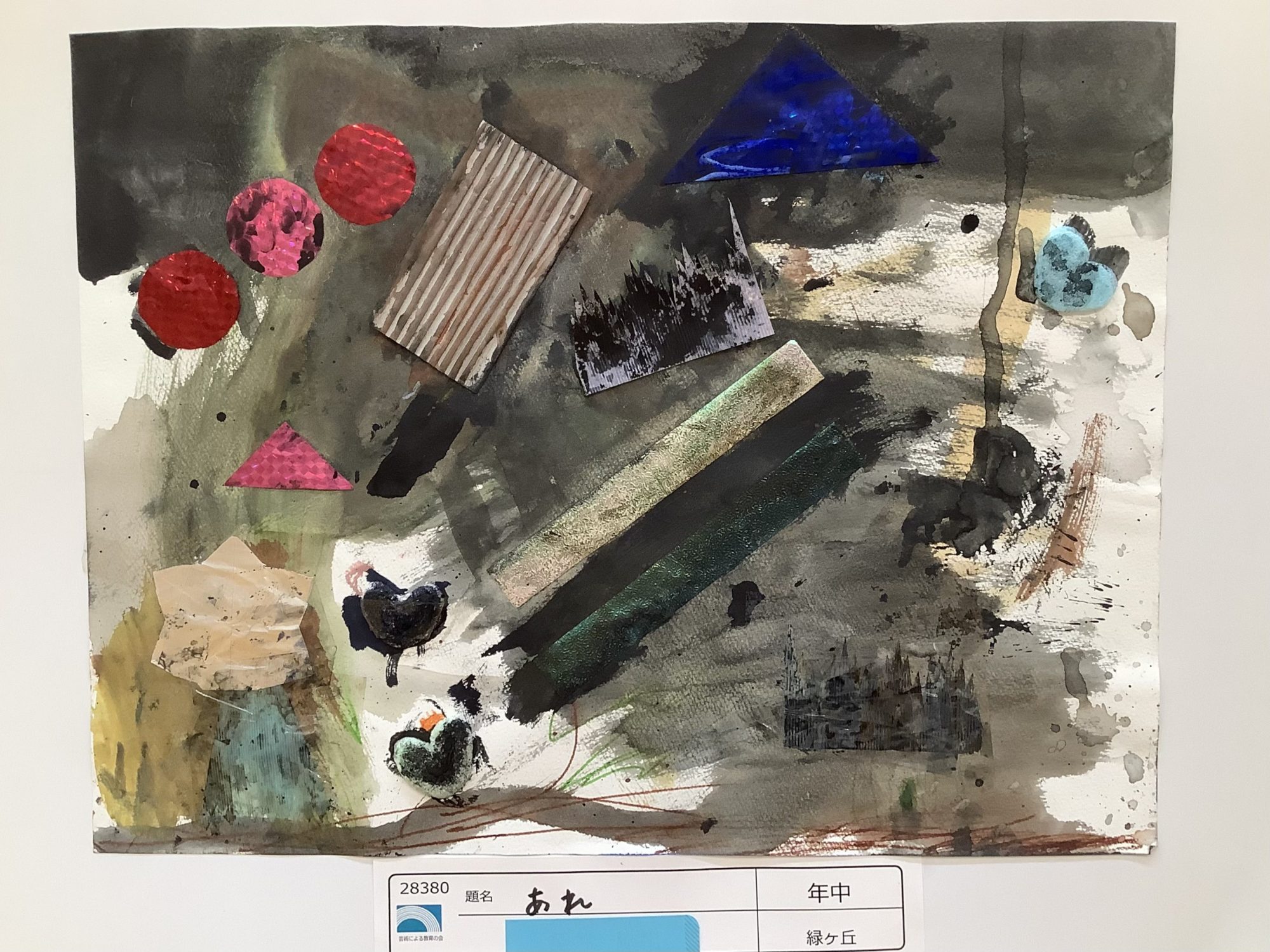 絵の具と折り紙の組み合わせでとても豊かな作品を