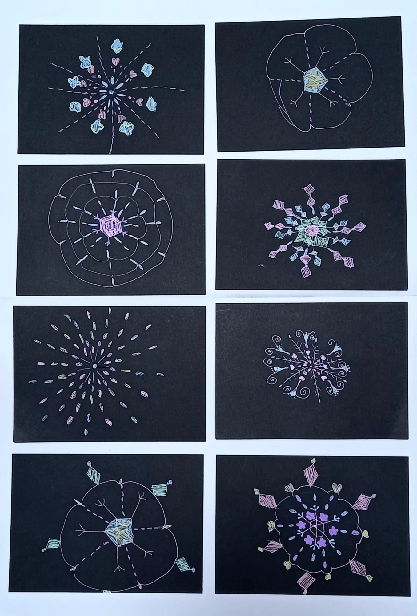 わ~素敵!雪の結晶をいろんなパターンで描いたのかな?