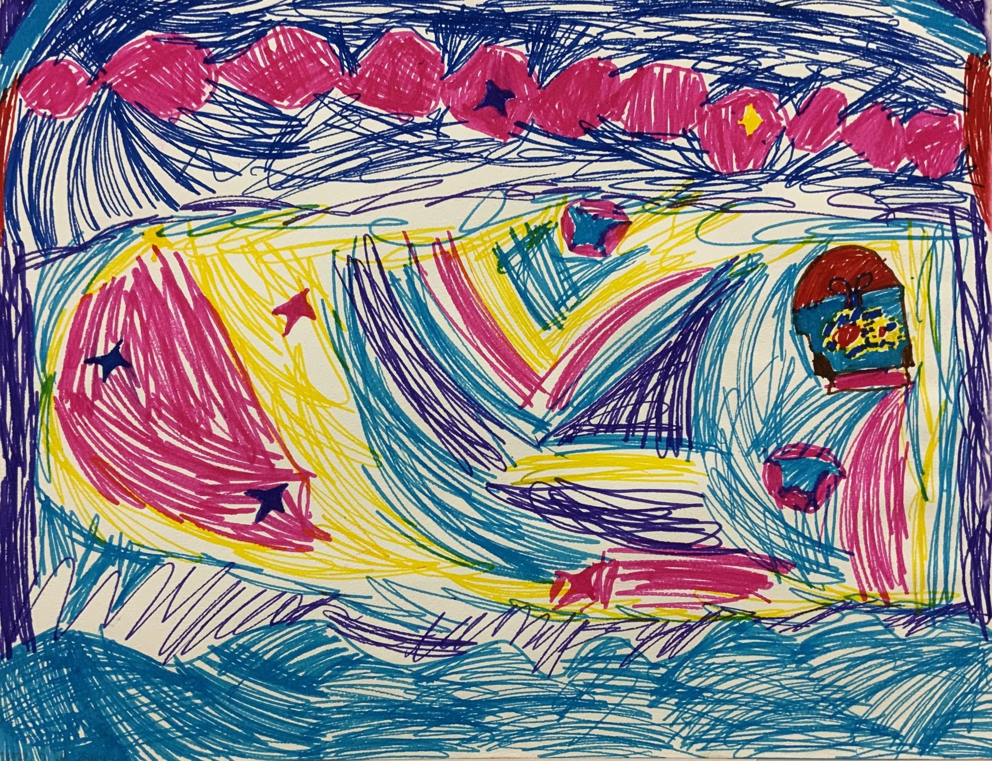 そして周りの空間の装飾や色の鮮やかさ、大胆な表現や塗り方。