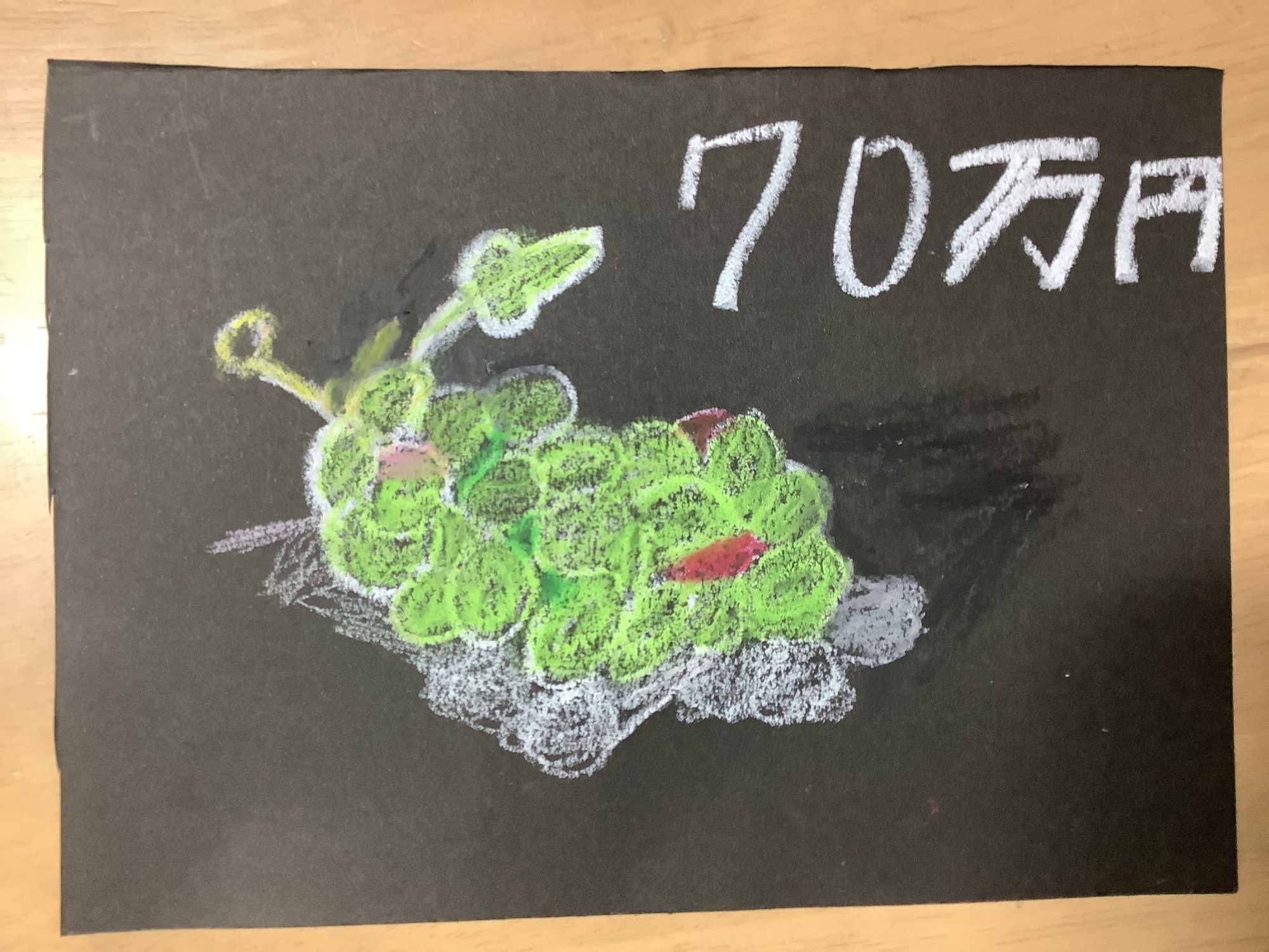とっても高い😮でもそのぶんとってもおいしそう!😋マスカットの一つ一つをしっかりていねいにかけているね!