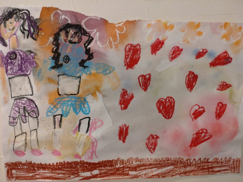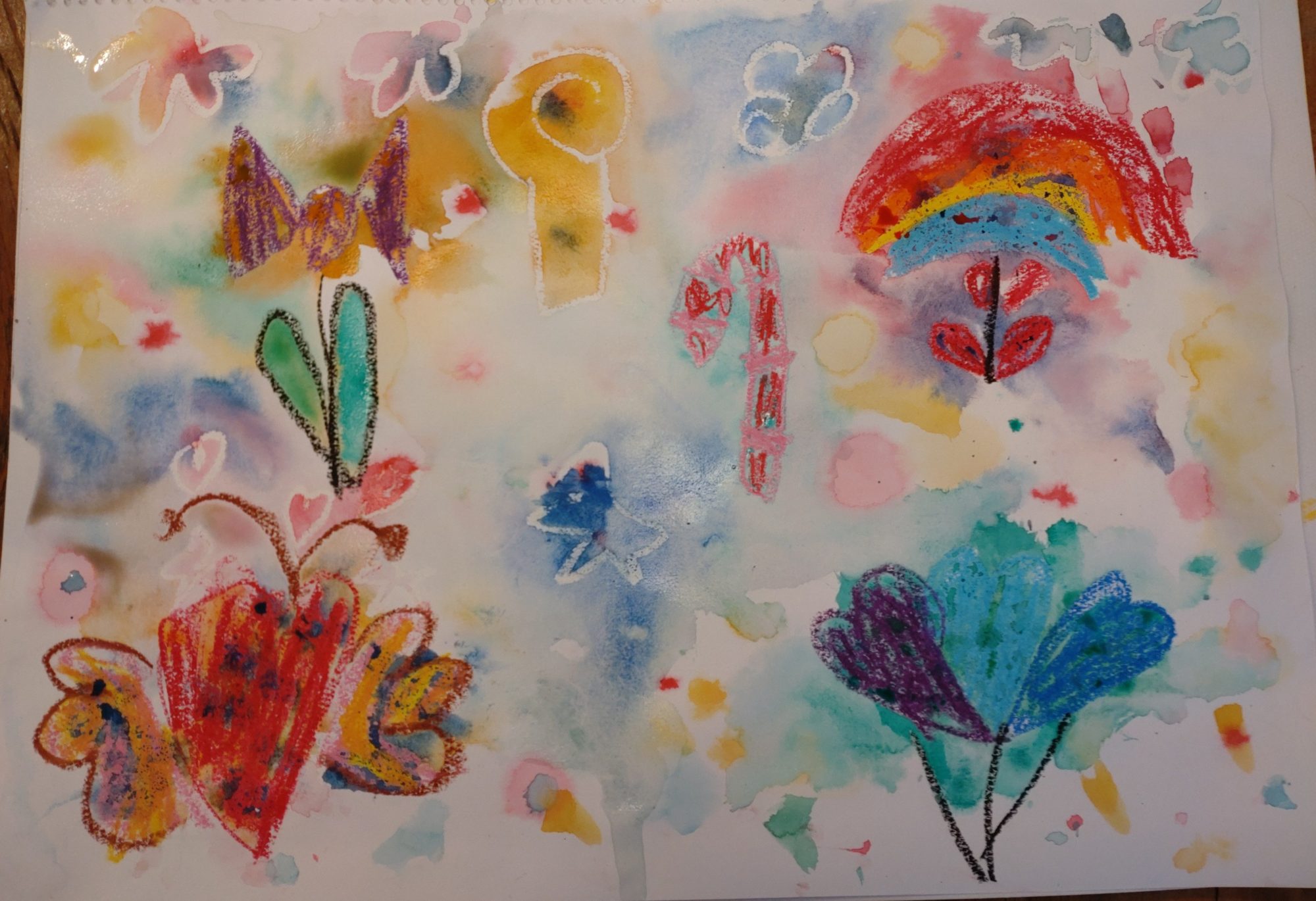 白いクレヨンさんで描いたお花が浮かび上がってくるようできれい!!!