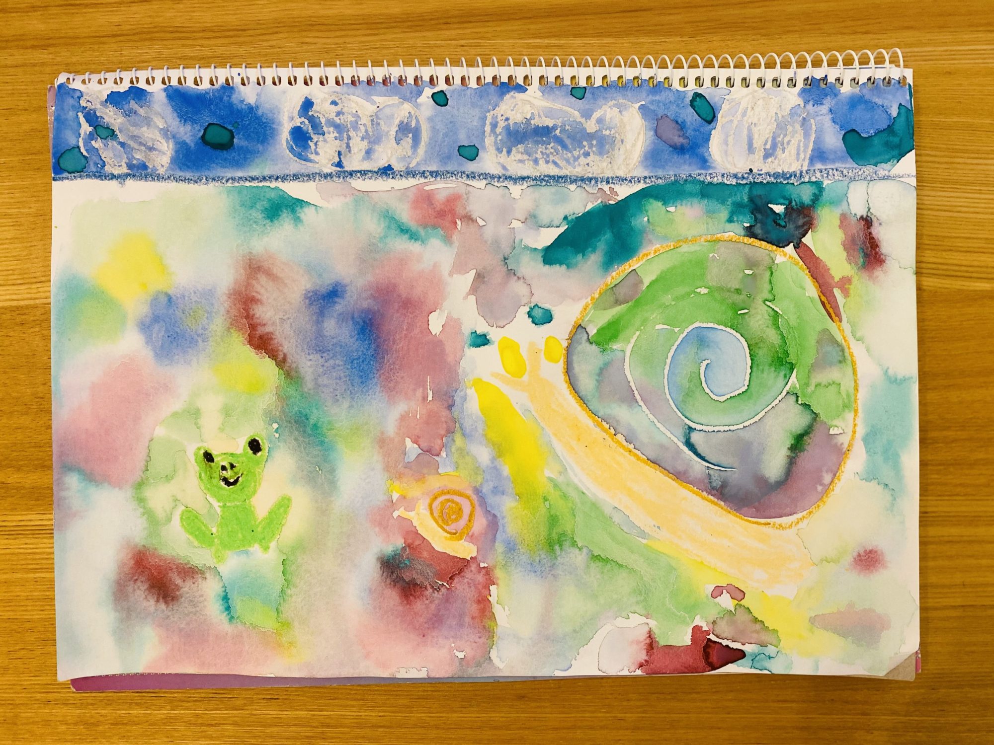 かたつむりさんのいろも、ウェットインウェットならではのもようができていて、かっこいい!!