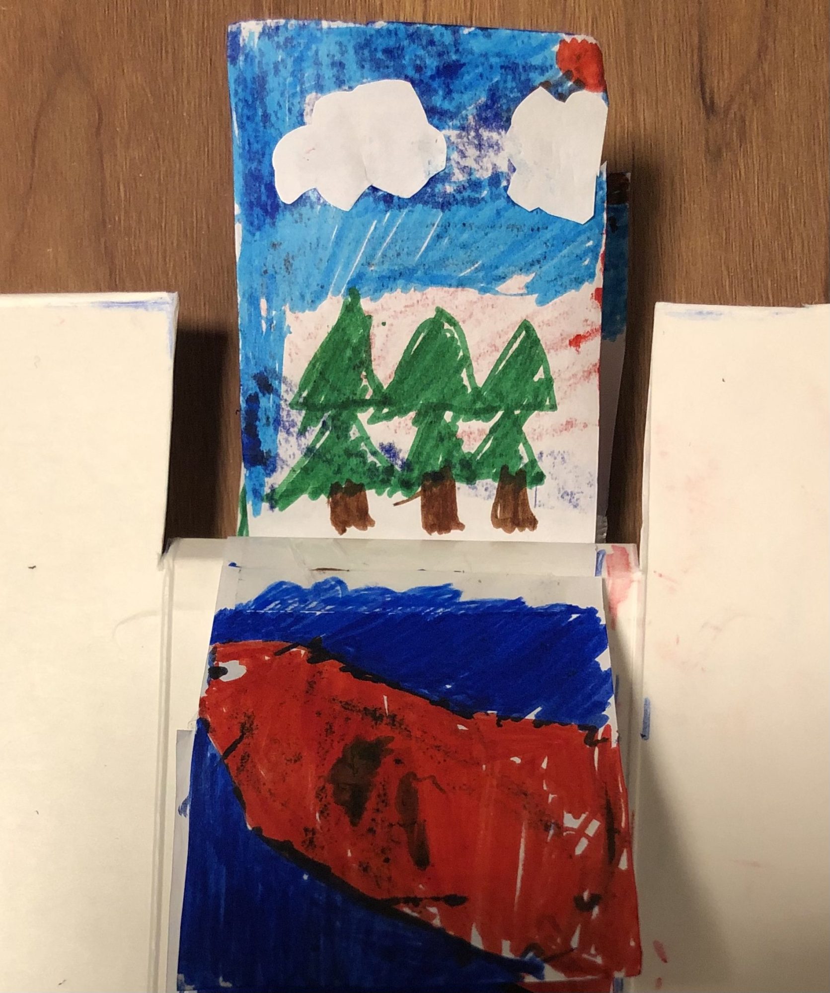 小さな4まいのカードを、こんなに力づよい作品に作りあげるgentaくんすごいな👏