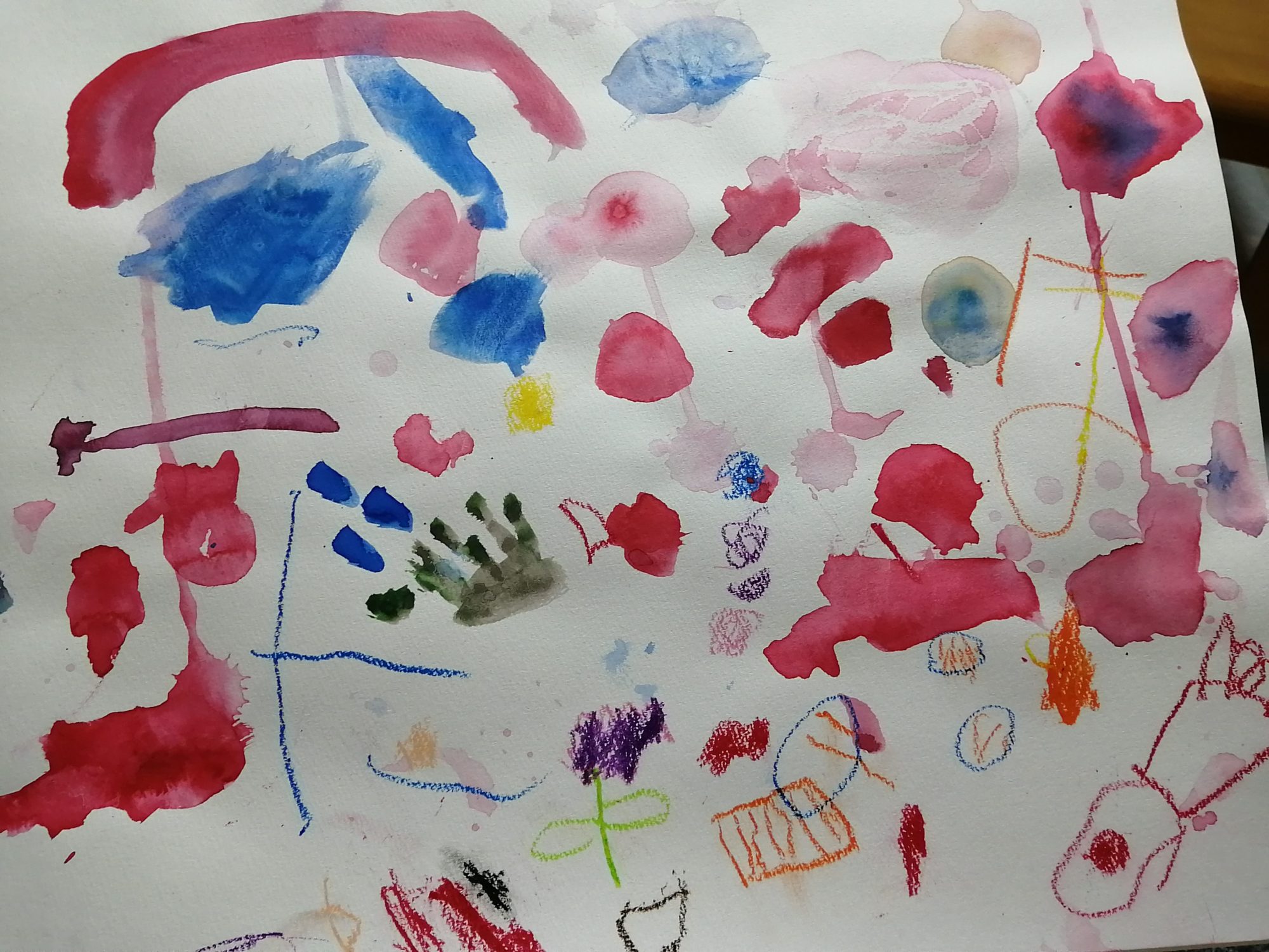 いろんなえのぐをためしているのが、みているほうもたのしくなってくるよ! いっぱいたのしくおえかきしてくださいね。